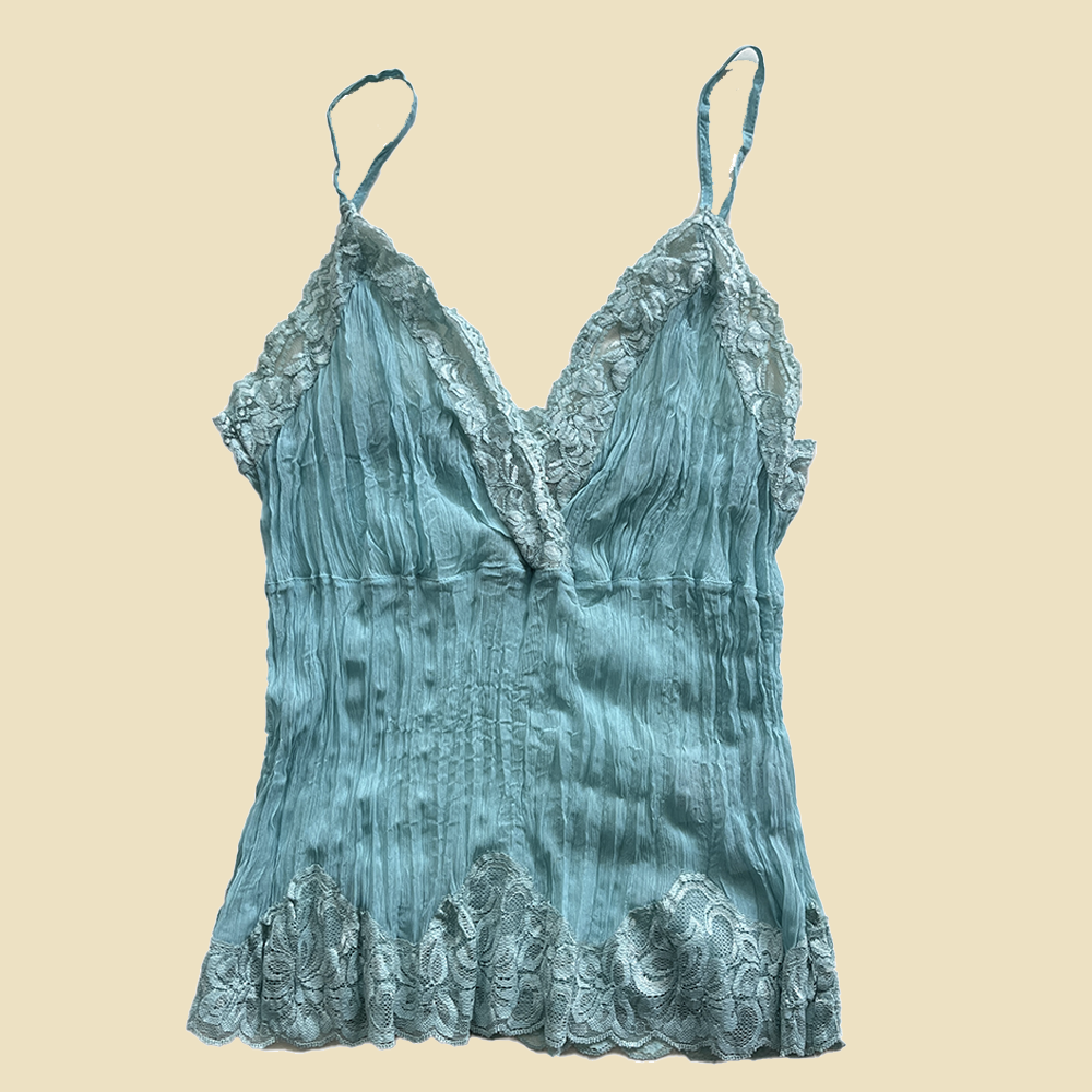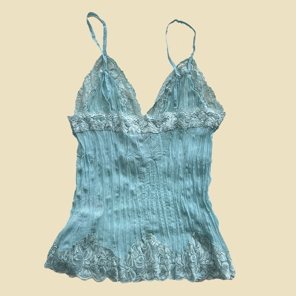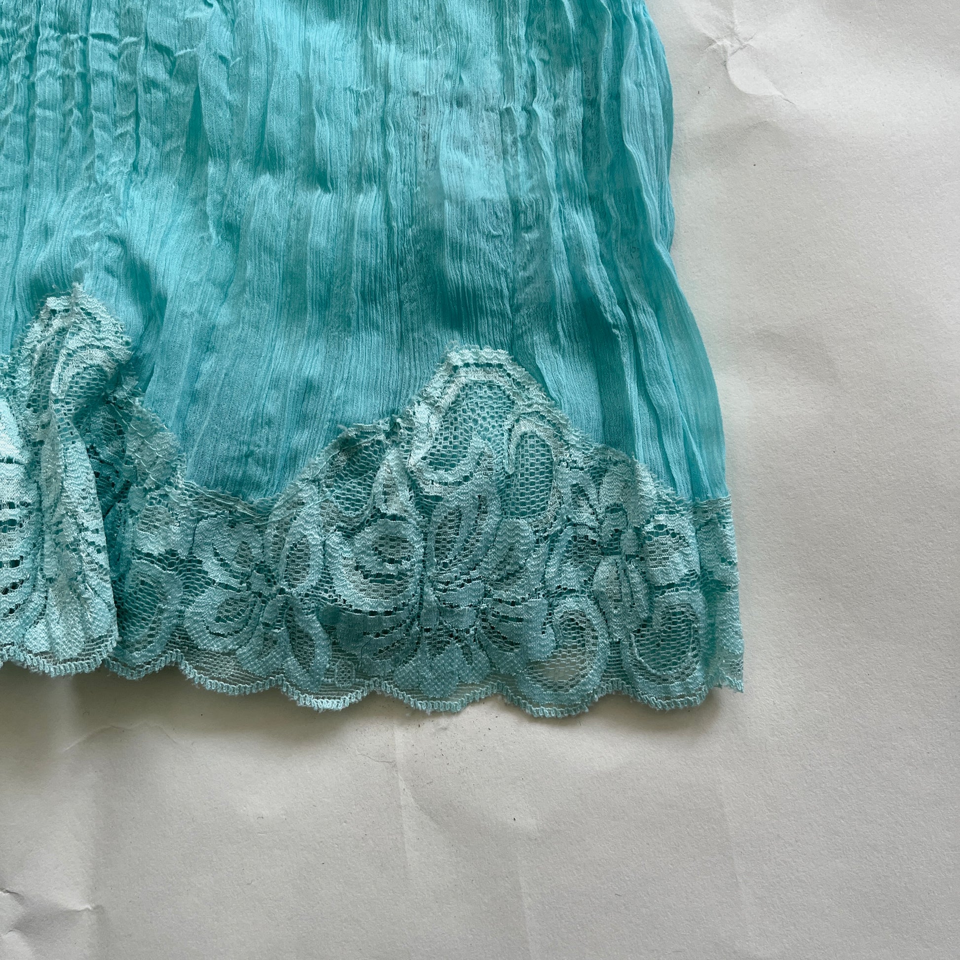 Top bleu turquoise en dentelle. Bretelles réglables.