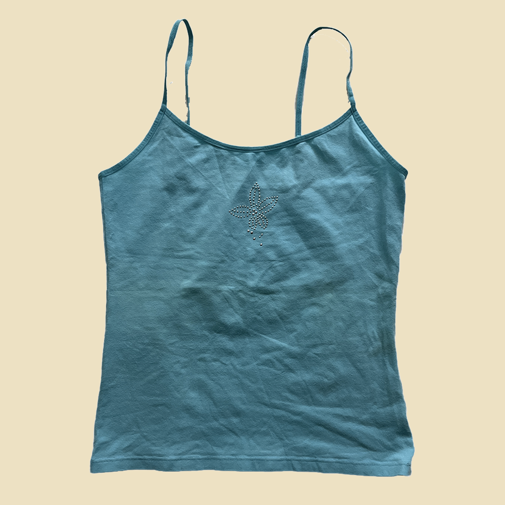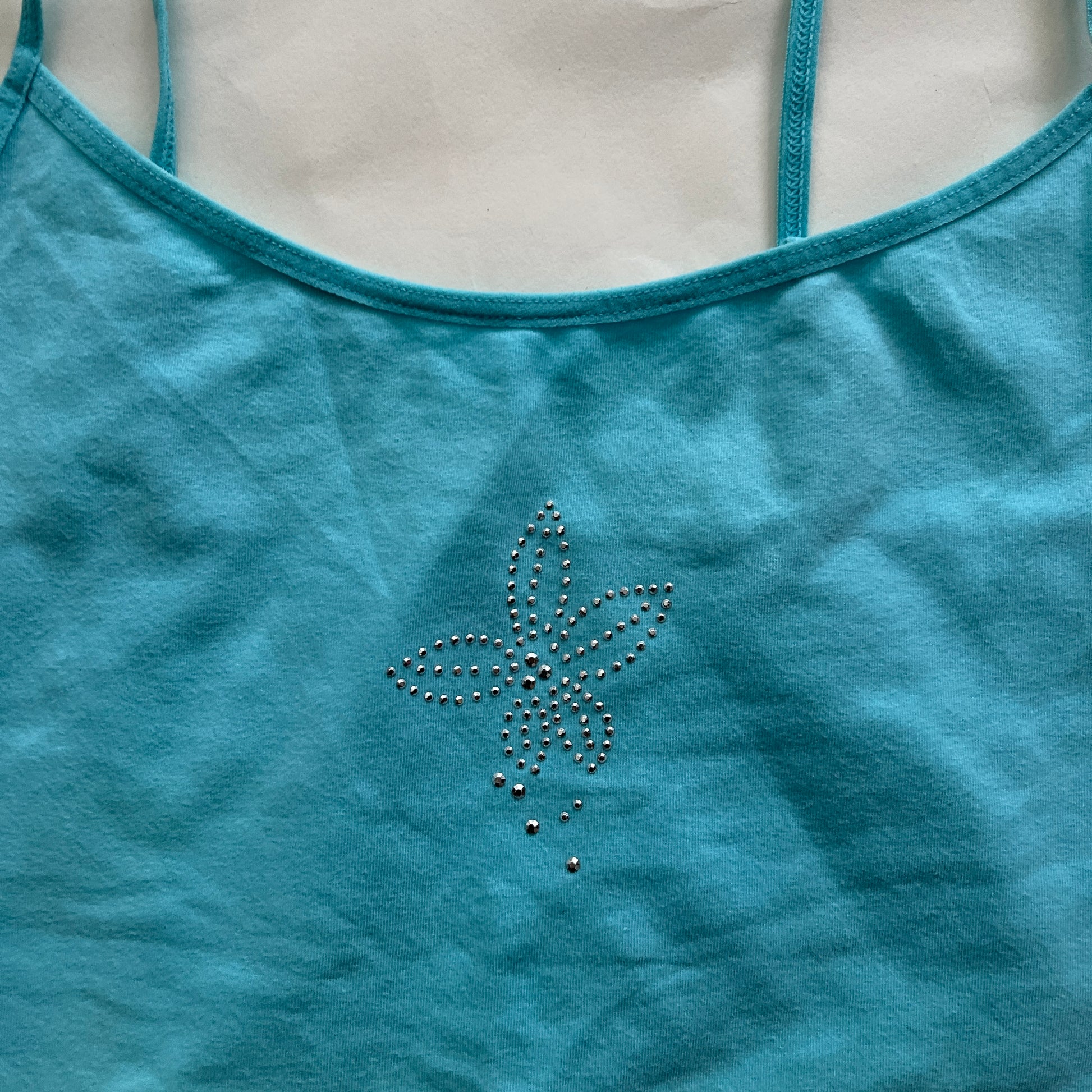 Débardeur fleur bleu turquoise à strass