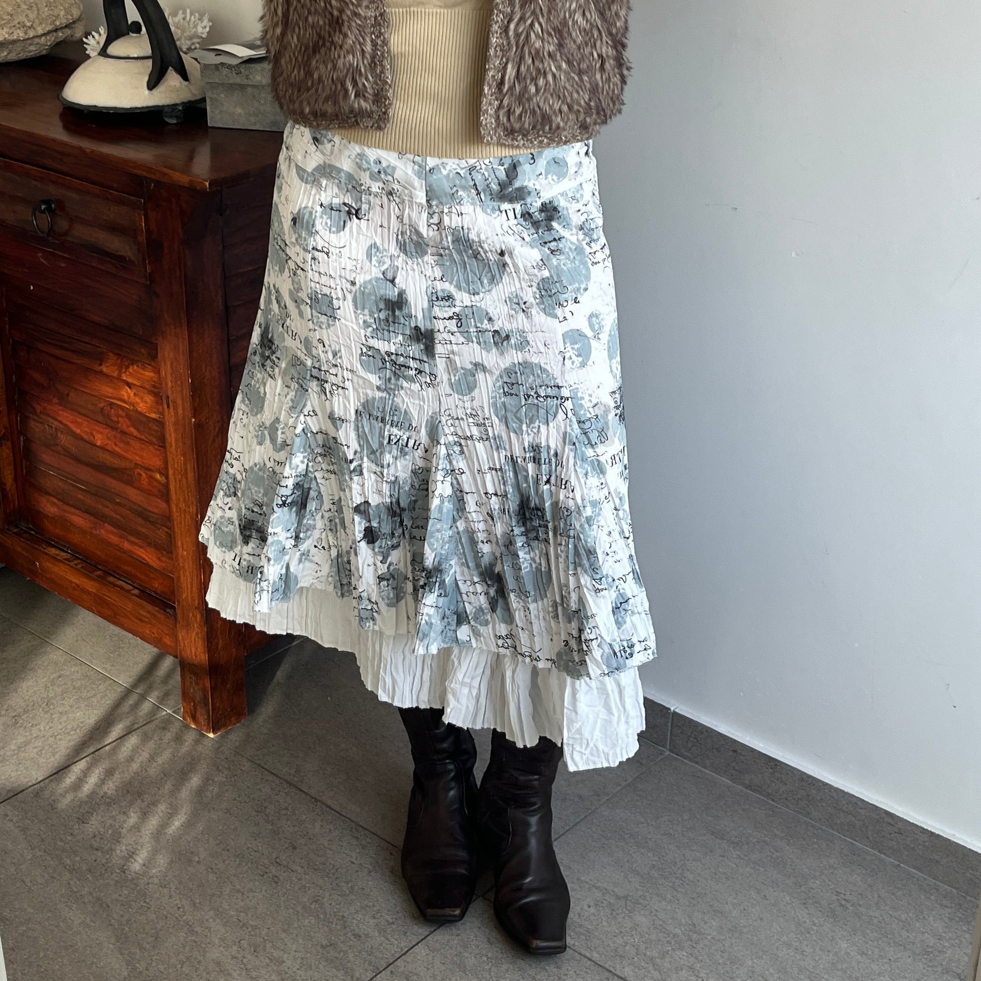 Jupe blanche graphique effet froissé