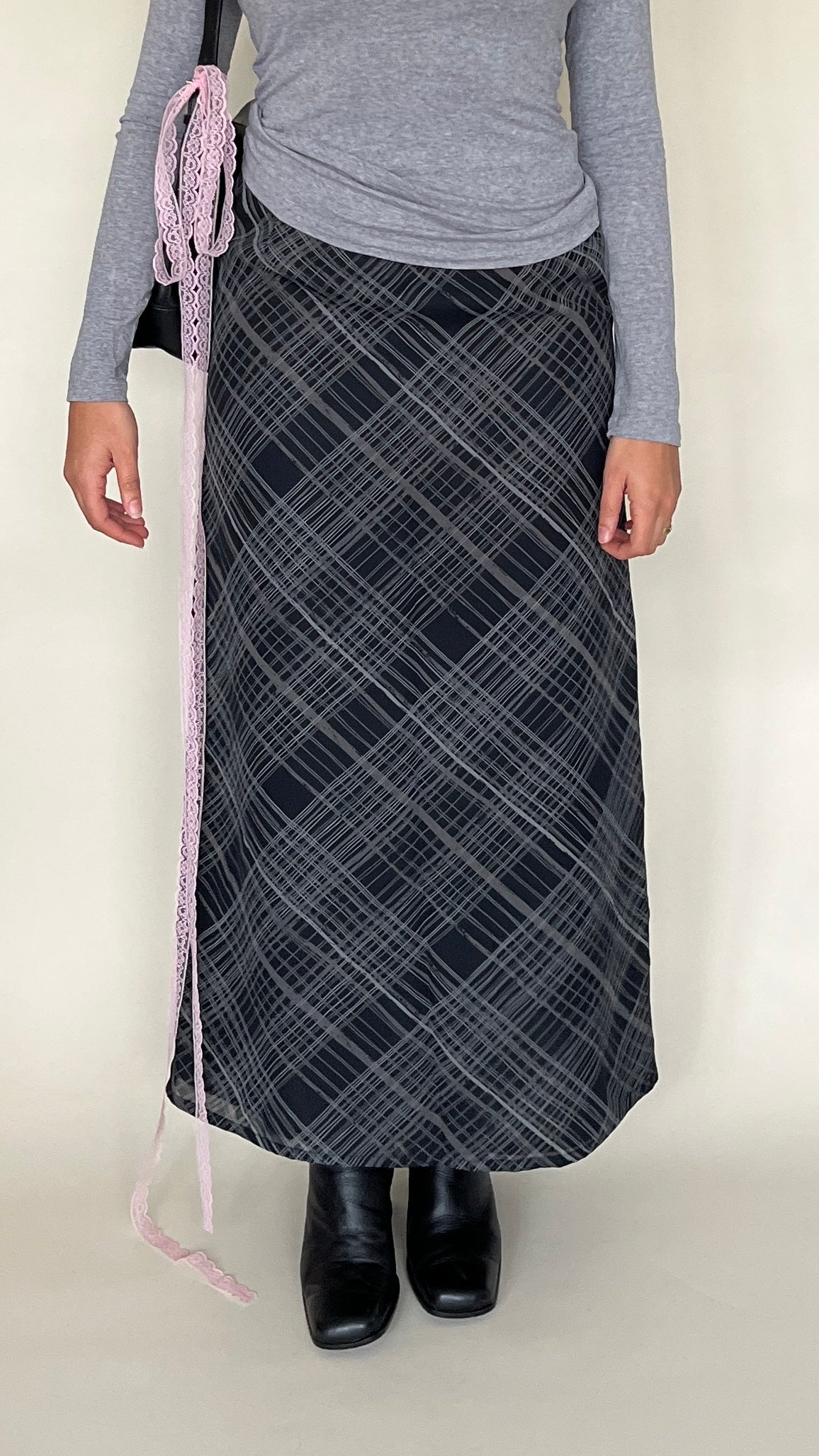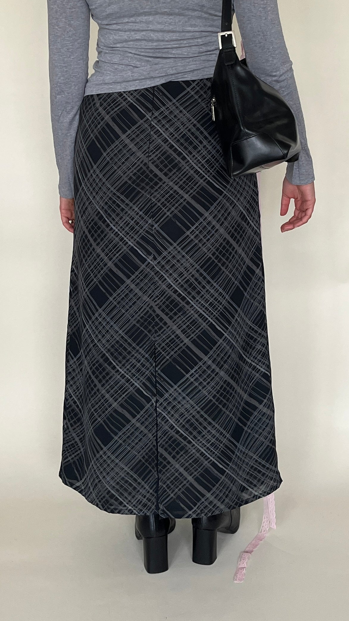 Jupe longue à carreaux grise et noire