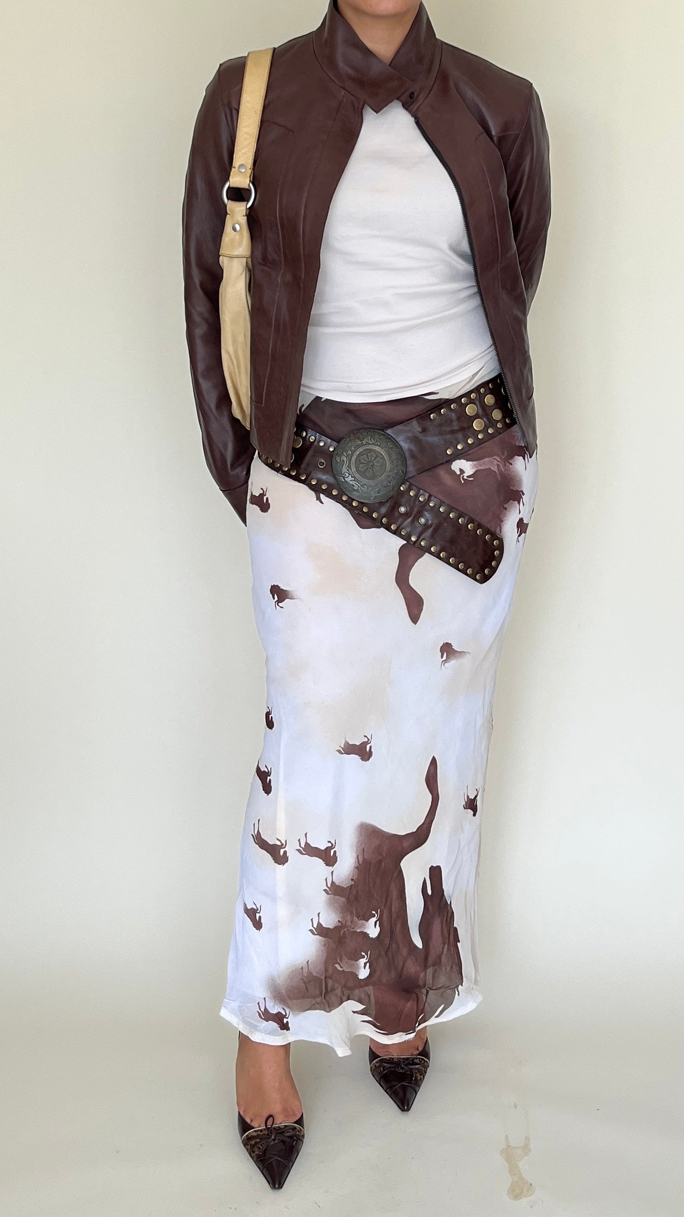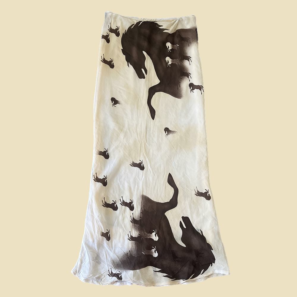 Maxi jupe italienne motifs chevaux. Taille élastique