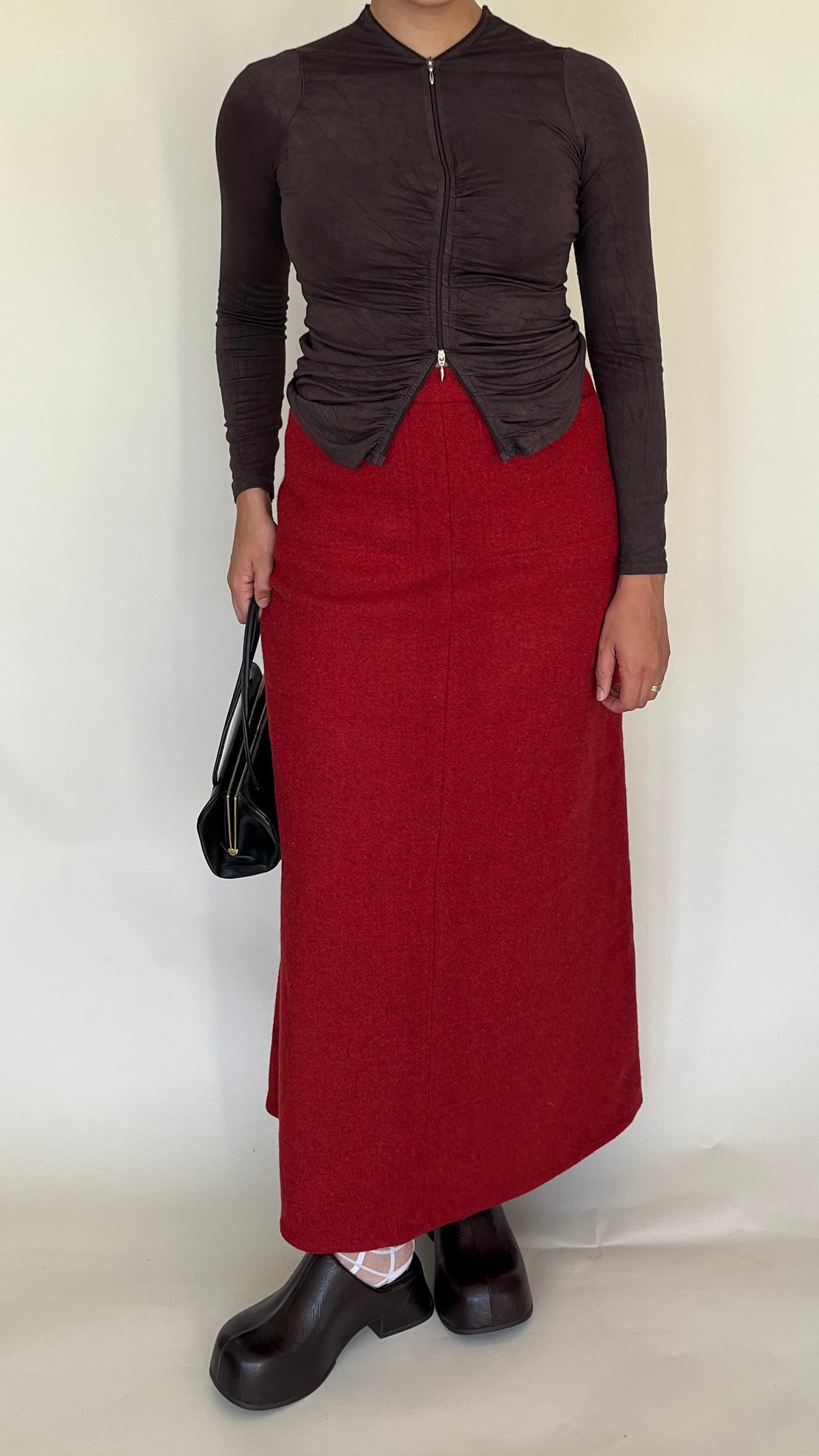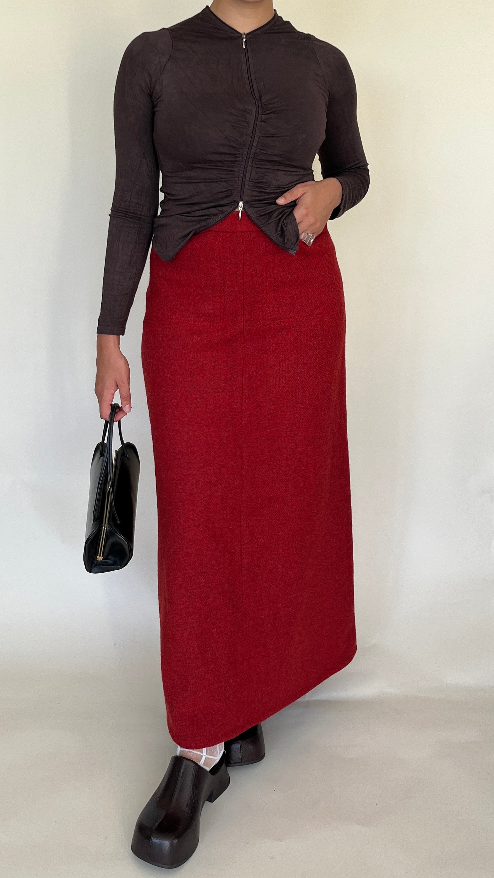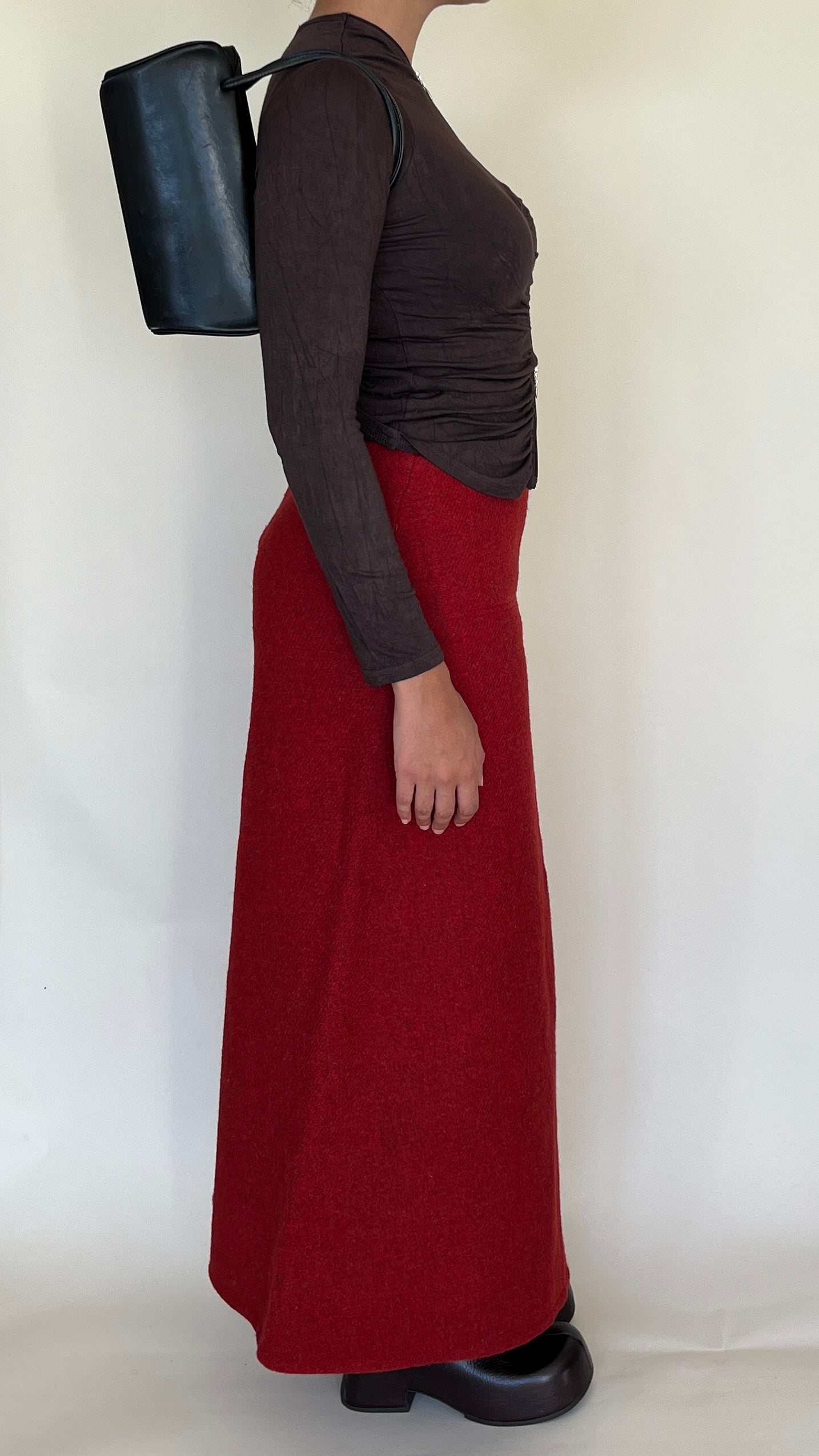 Jupe longue en laine rouge