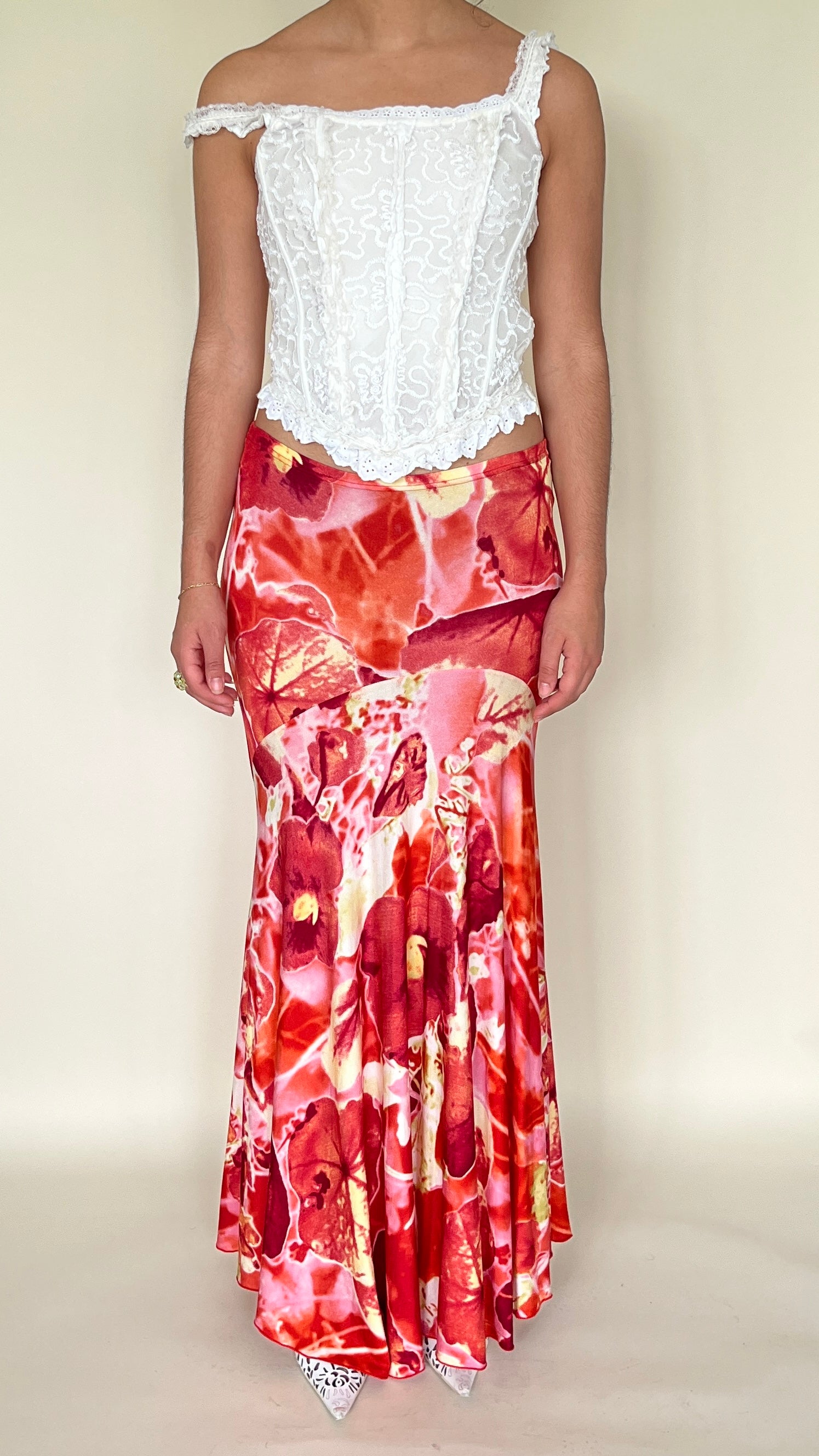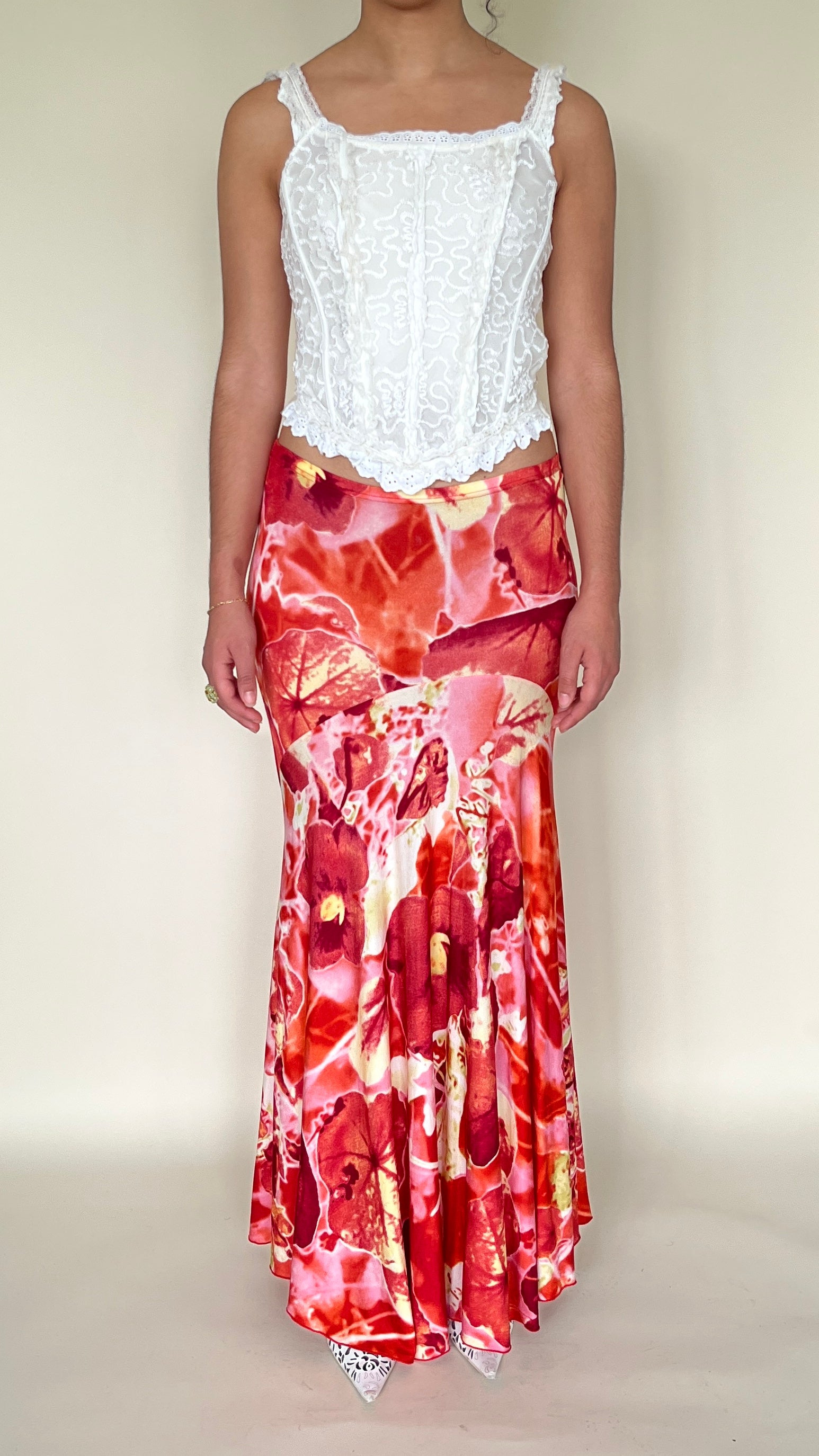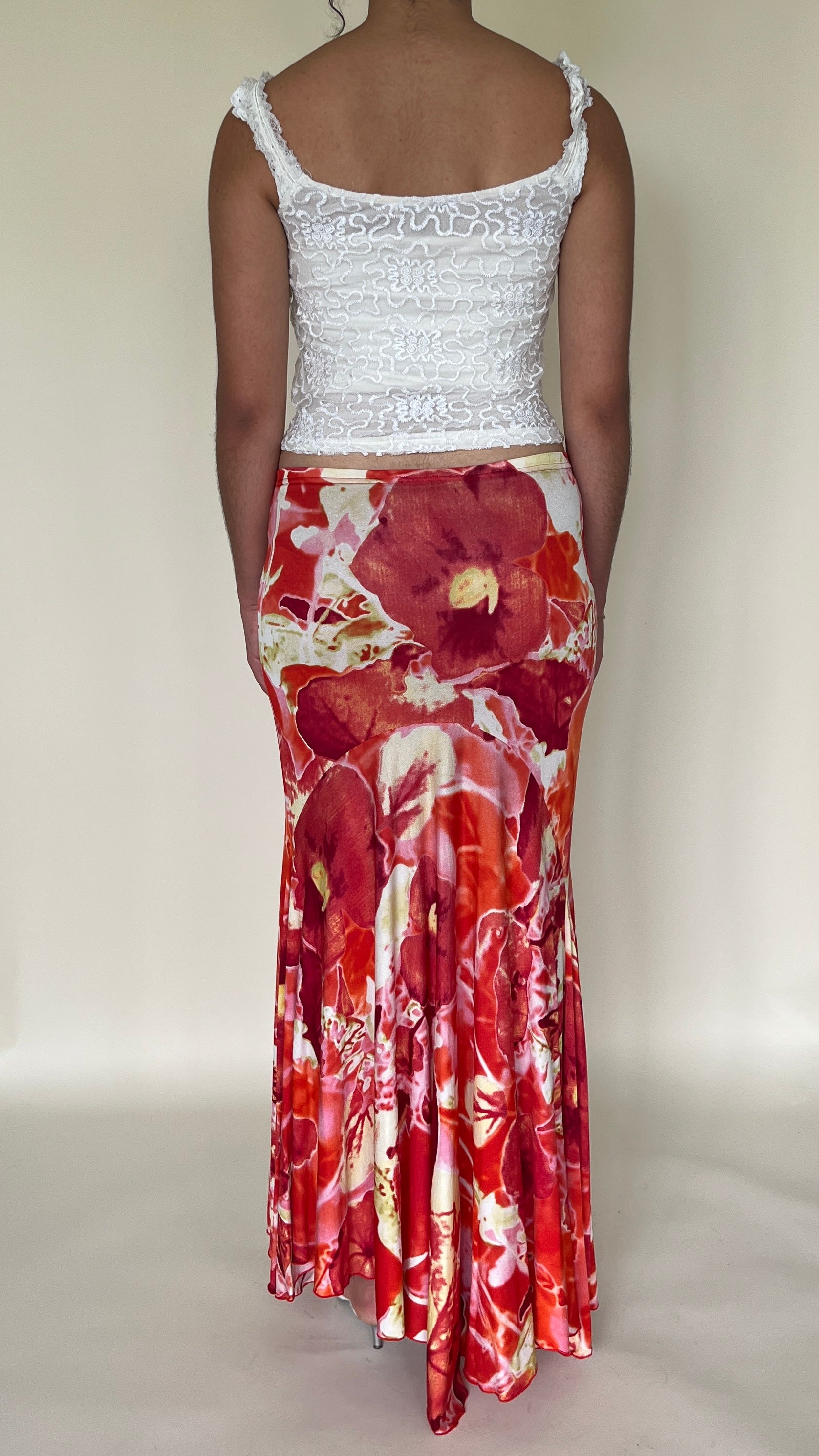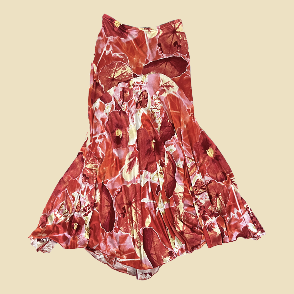 Jupe longue fleurie rouge
