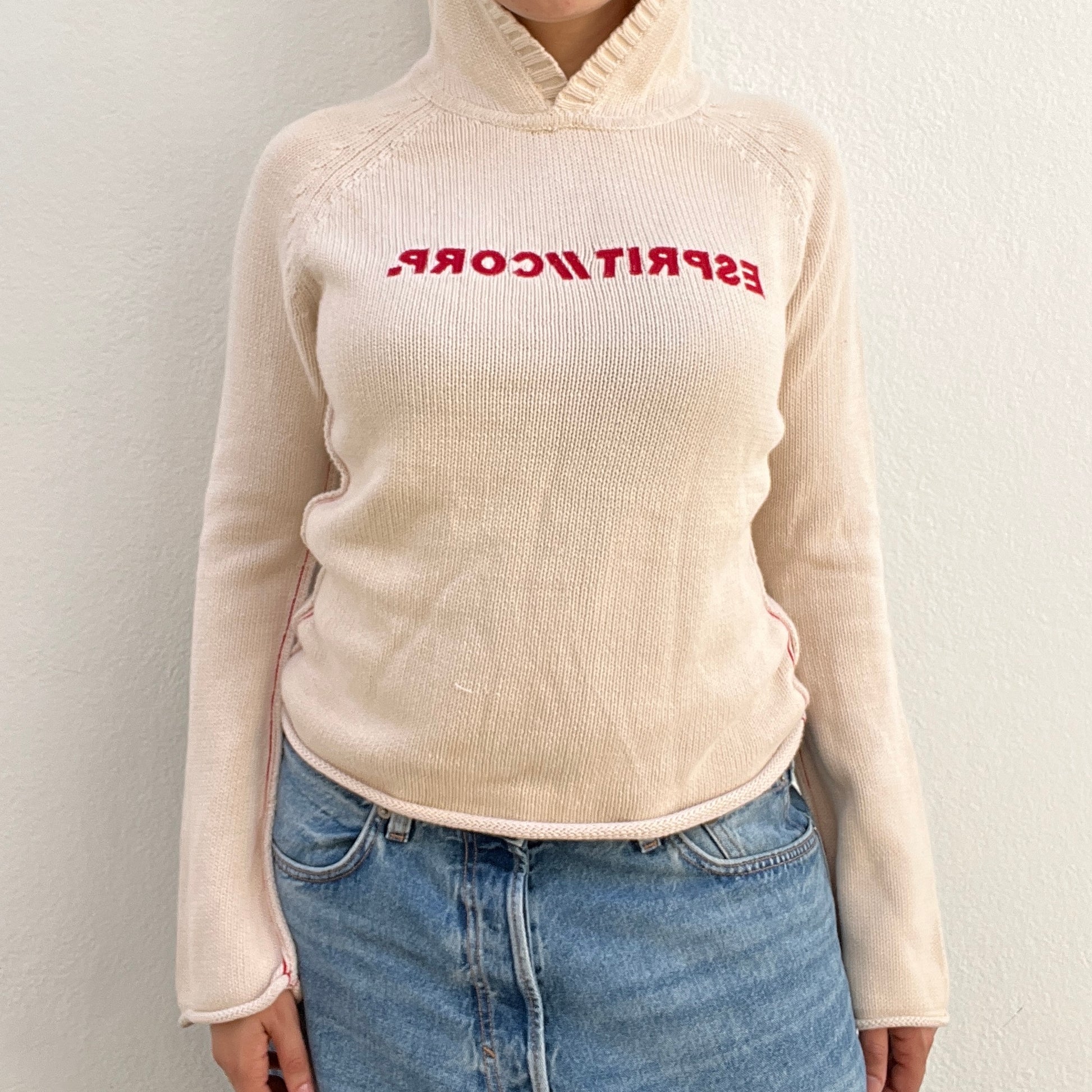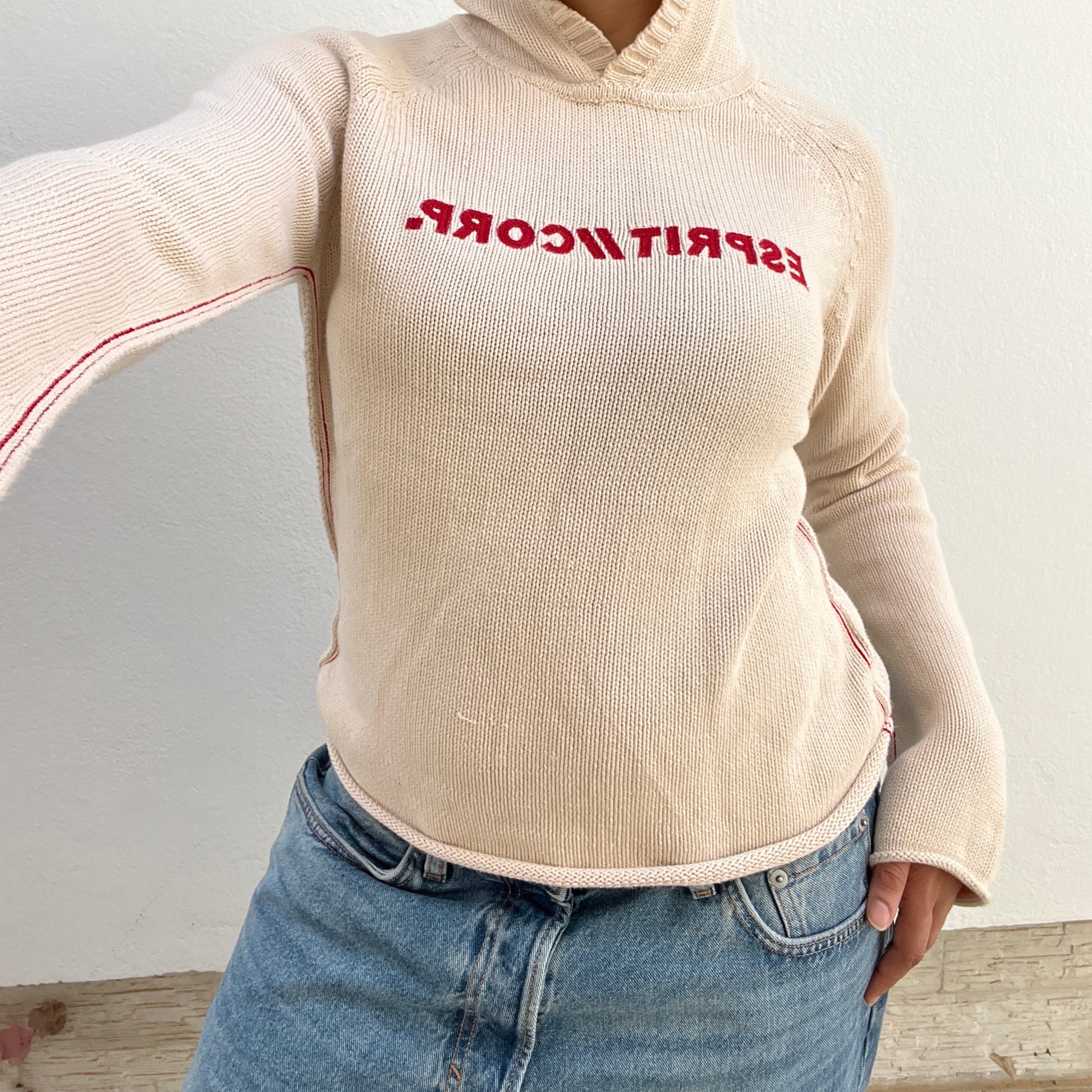 Pull beige et rouge à capuche Esprit vintage