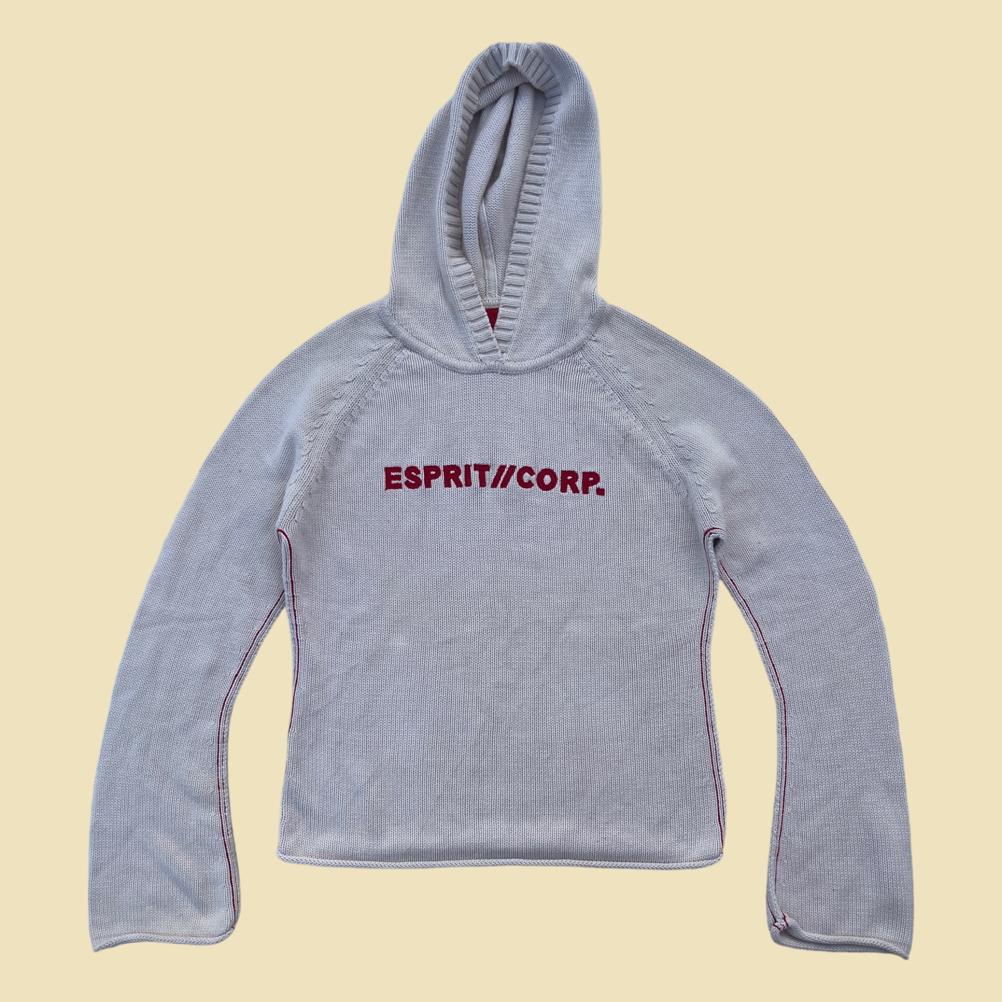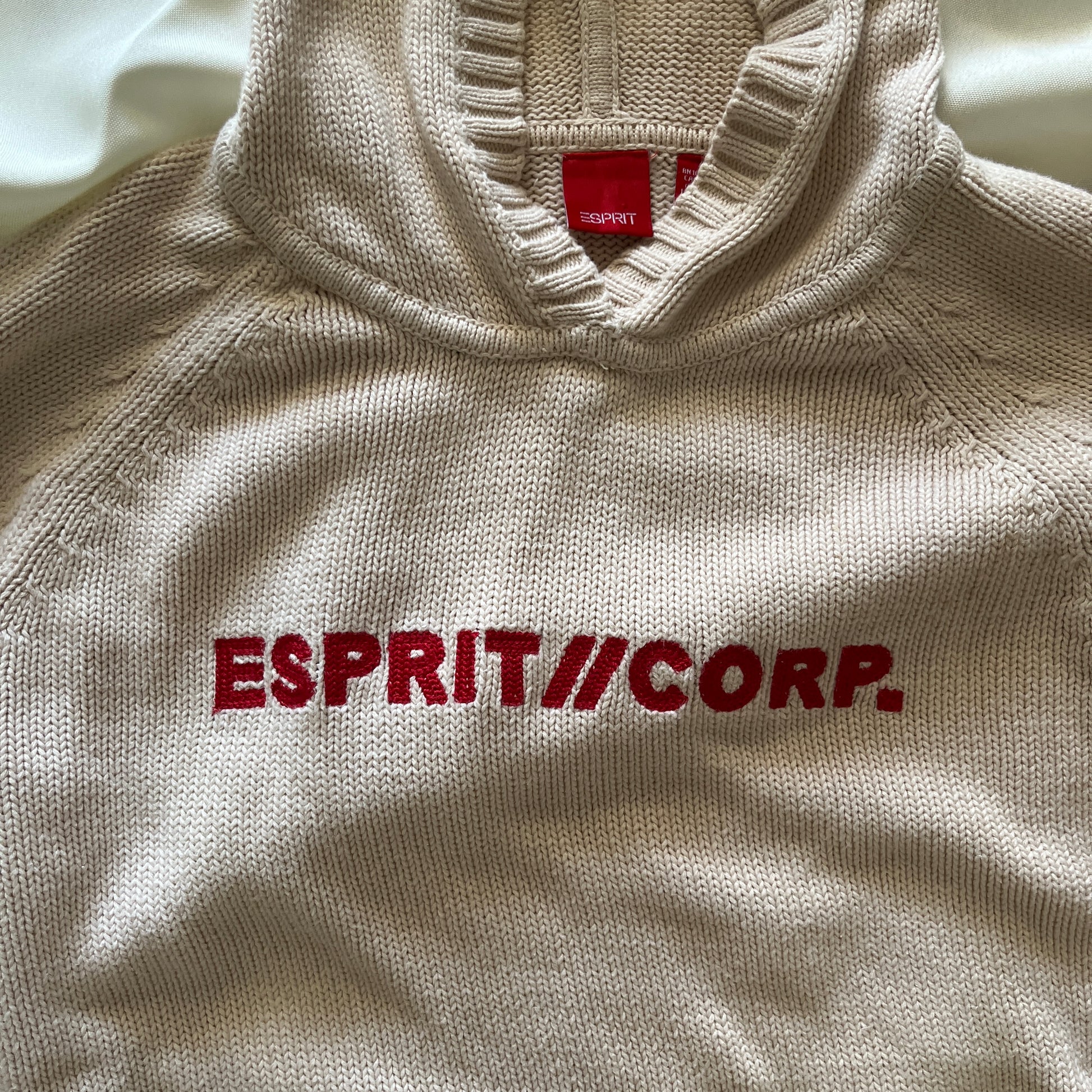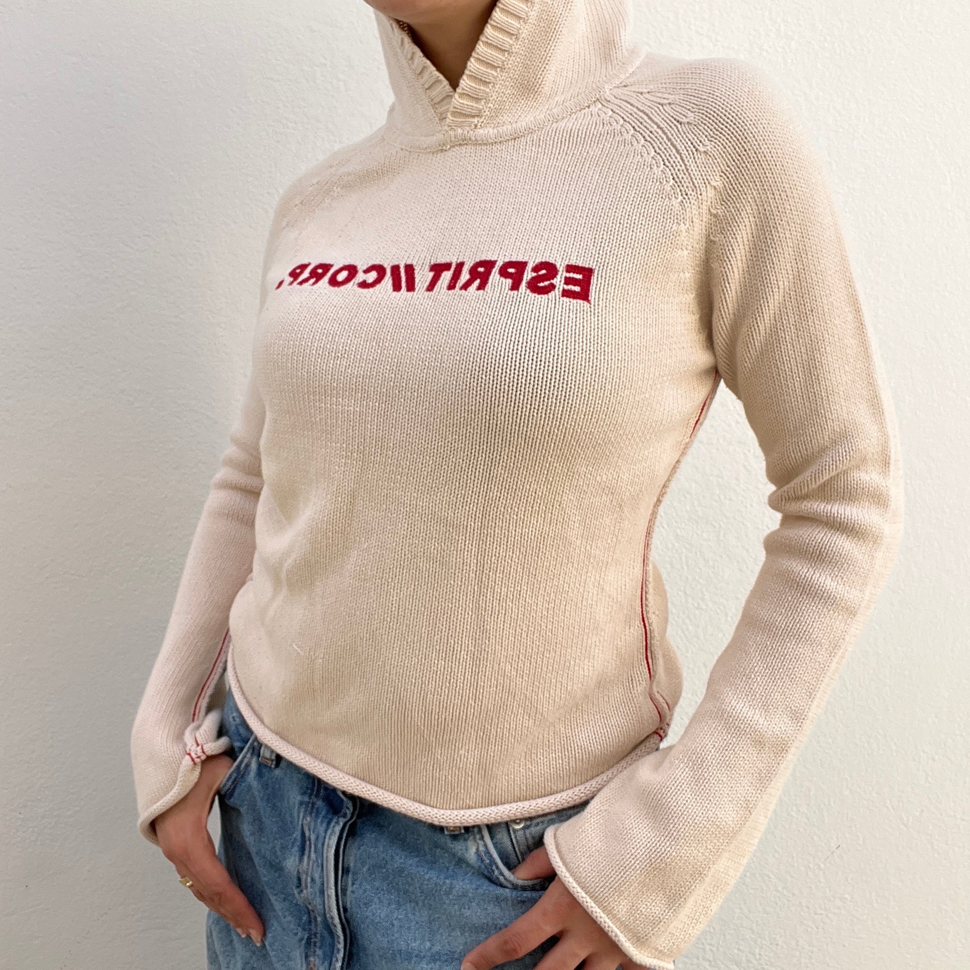 Pull beige et rouge à capuche Esprit vintage.