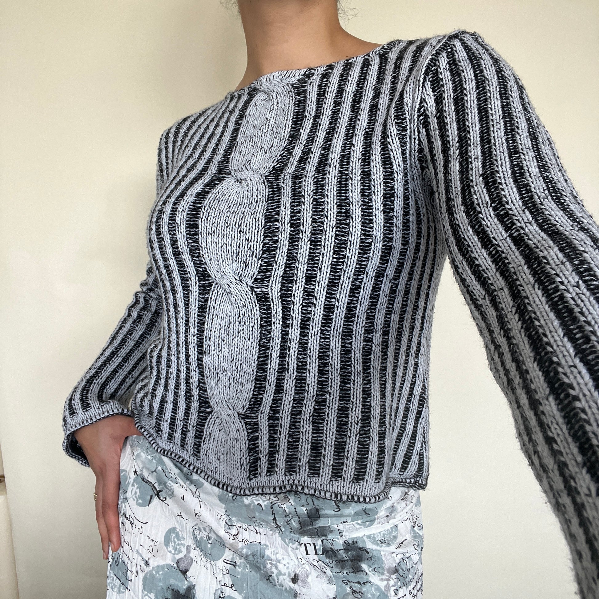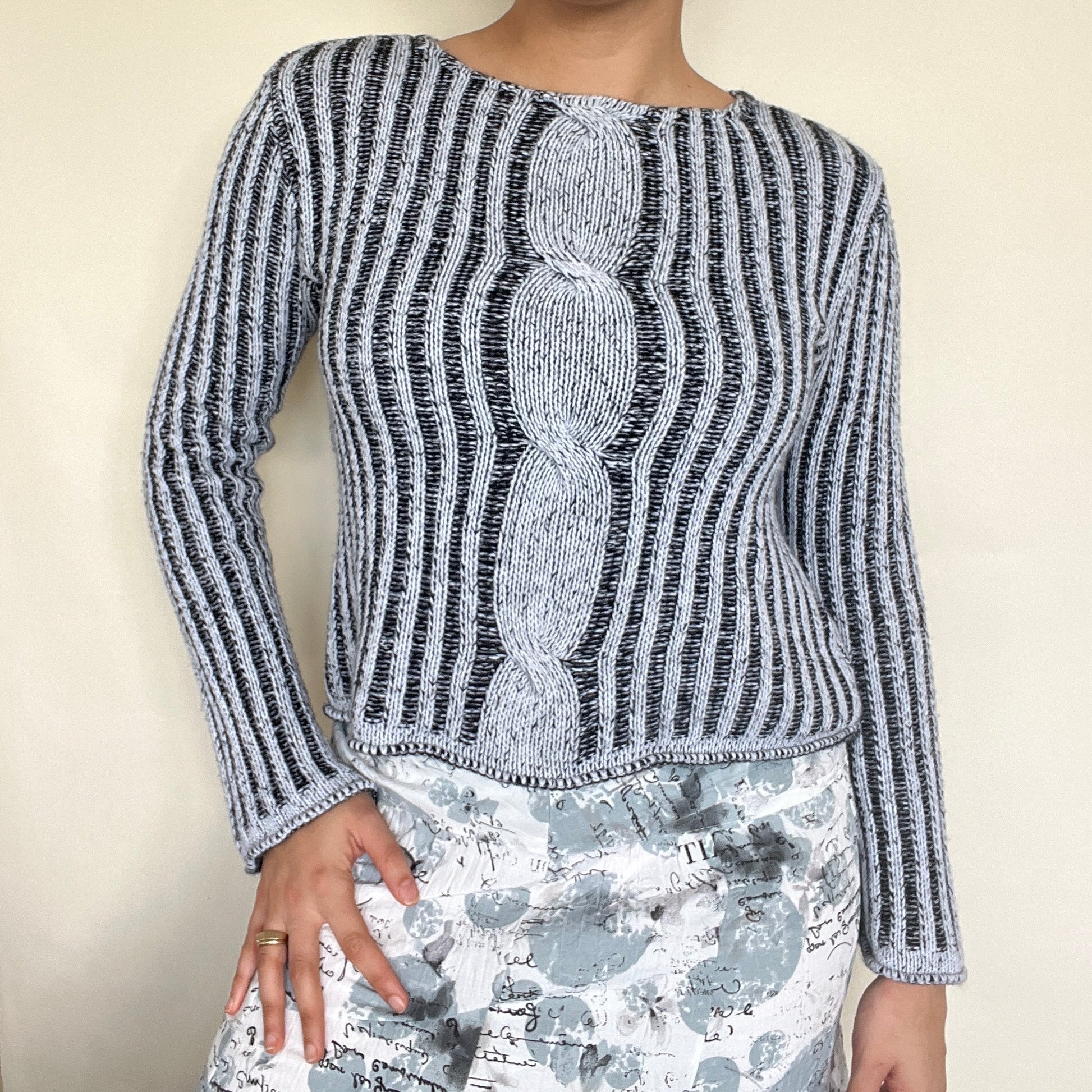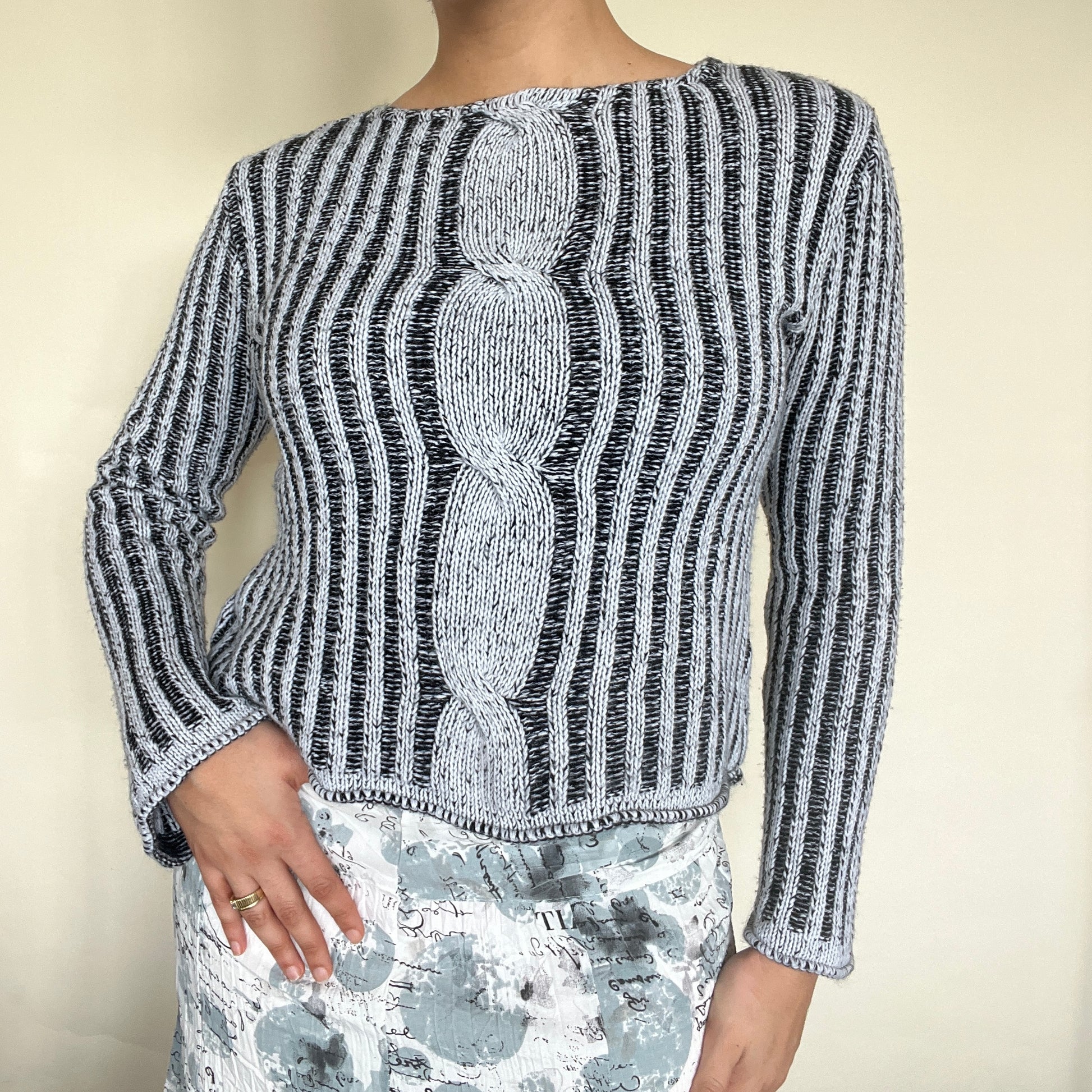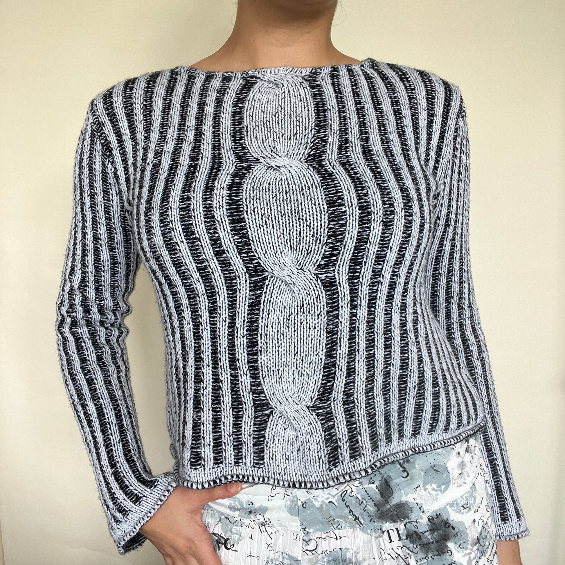 Pull côtelé tressé gris bleu. Jennyfer des années 2000