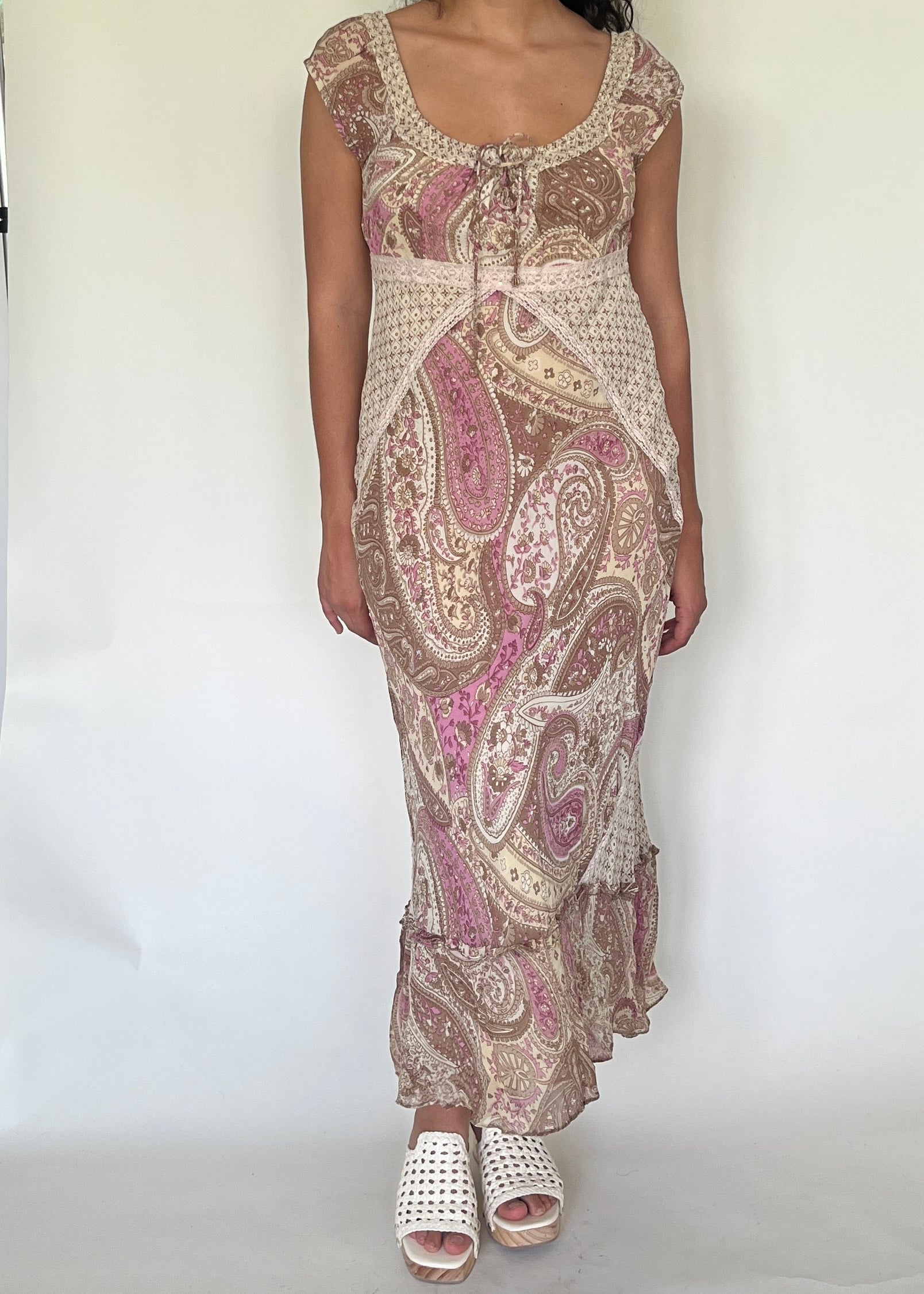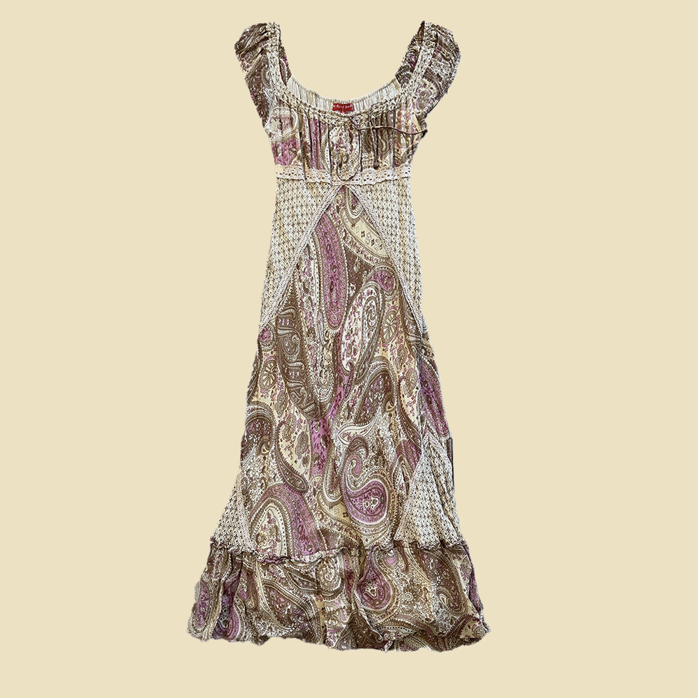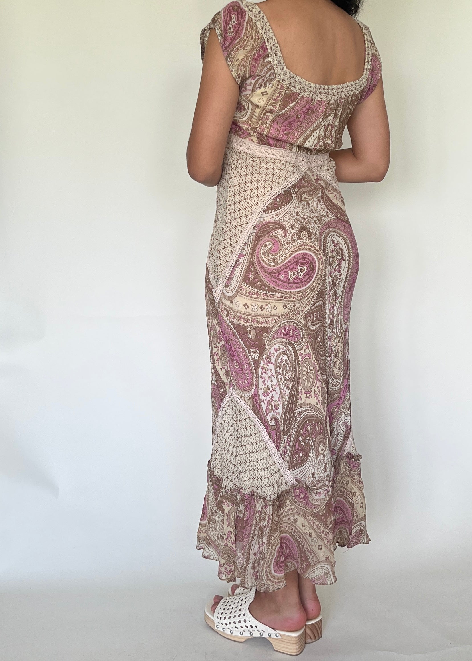 Robe longue bohème rose et beige