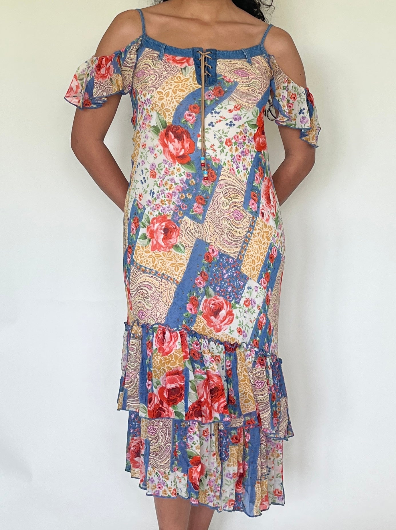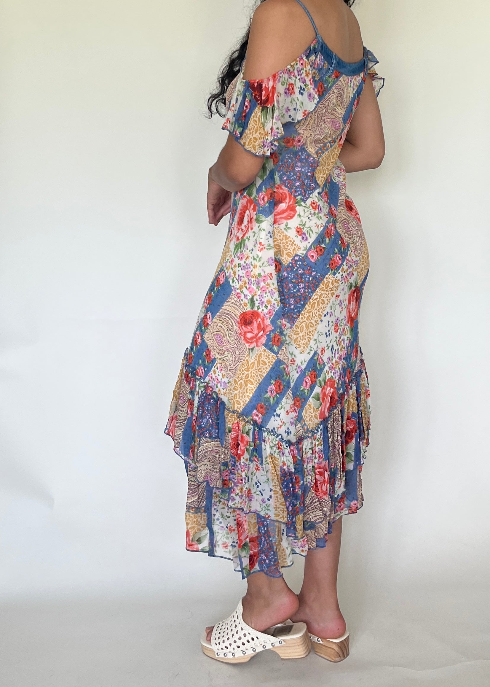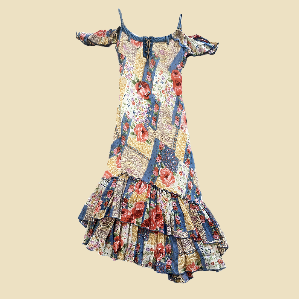 Robe longue en patchwork fleuri