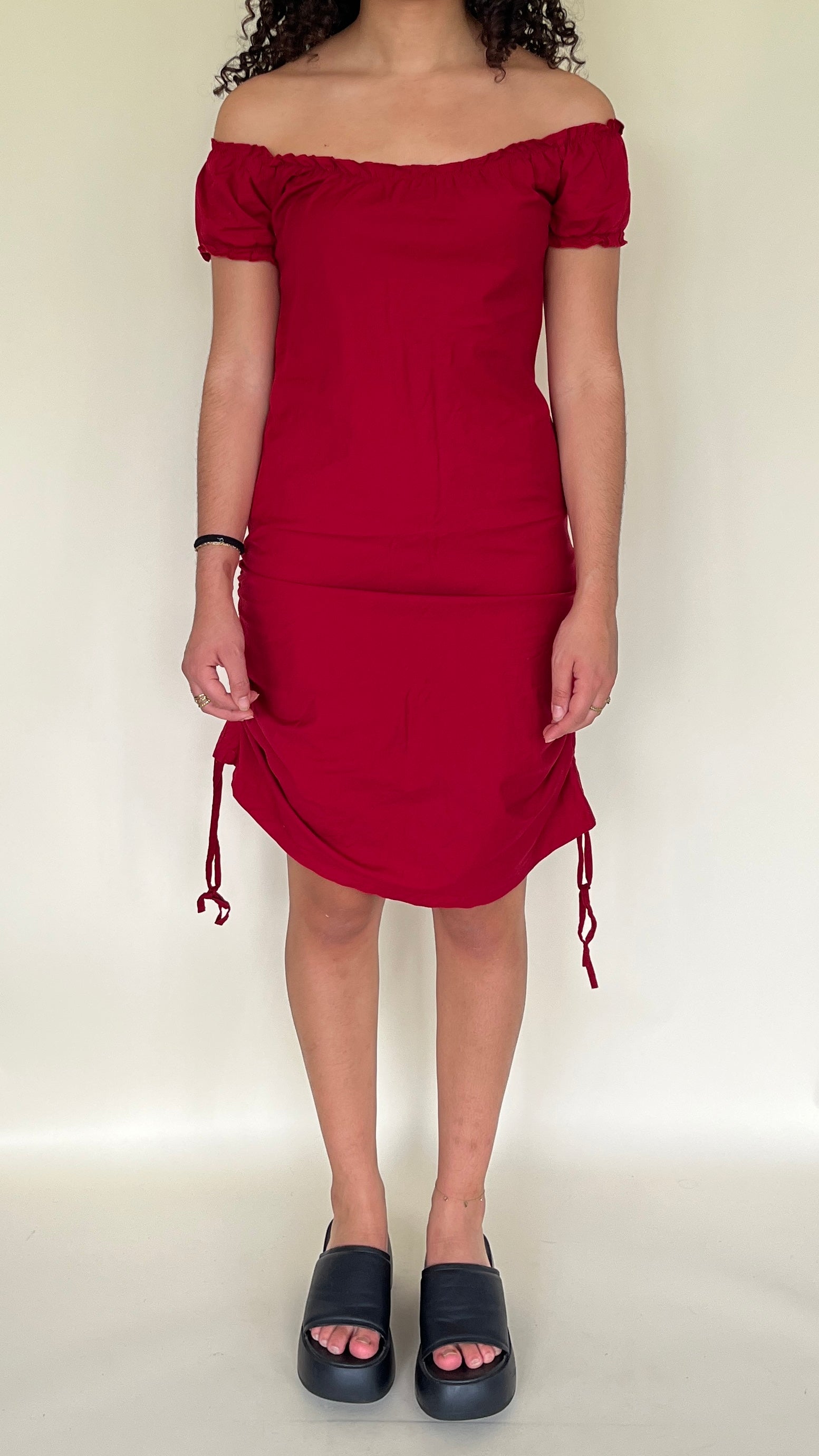Détails : Col bardot. Cordons de serrage latéraux. Fermeture zippée à l'arrière