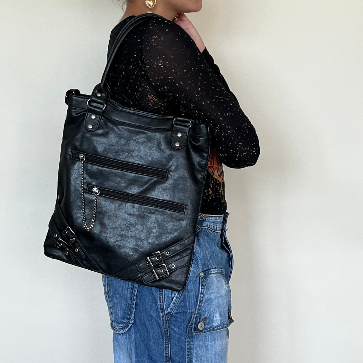 Sac à main en cuir noir vintage inspiration Balenciaga