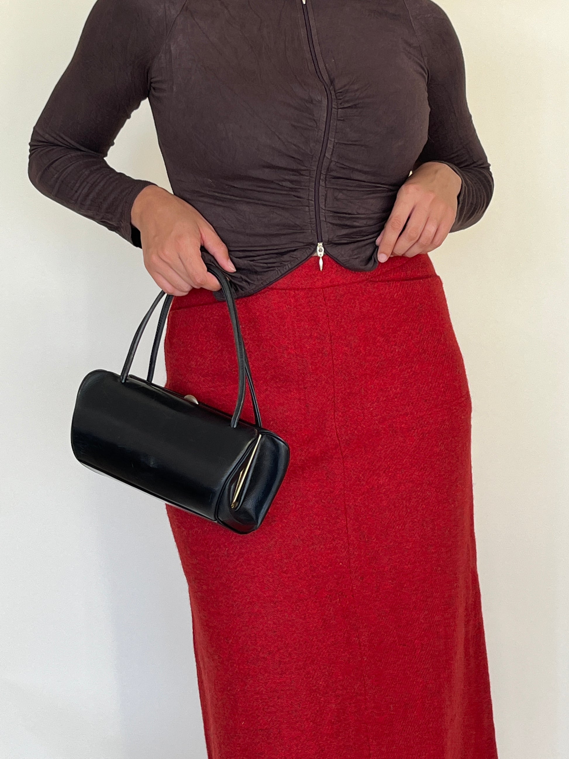 sac cylindrique en cuir noir