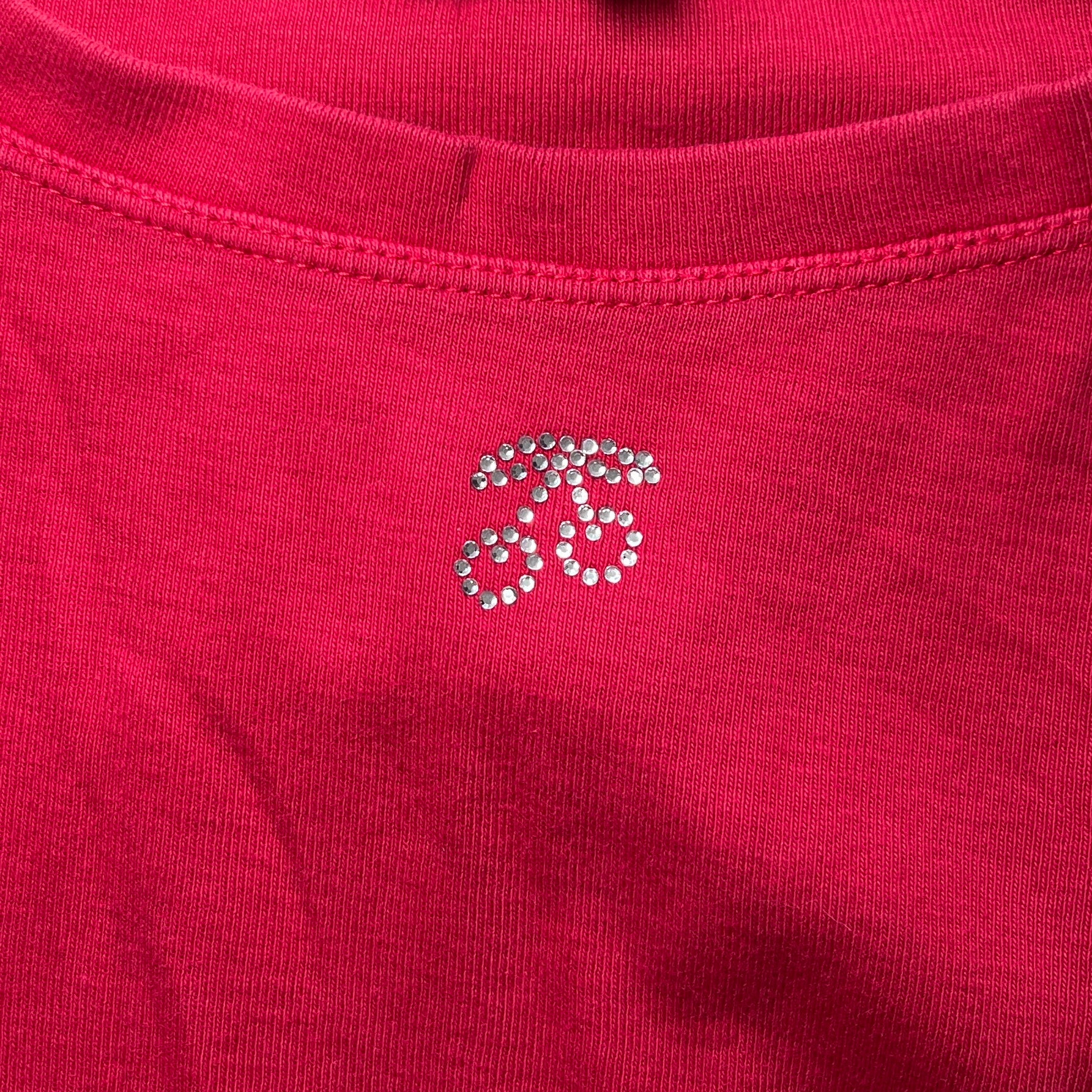 Top manche longue 100% coton, motif cerise en strass
