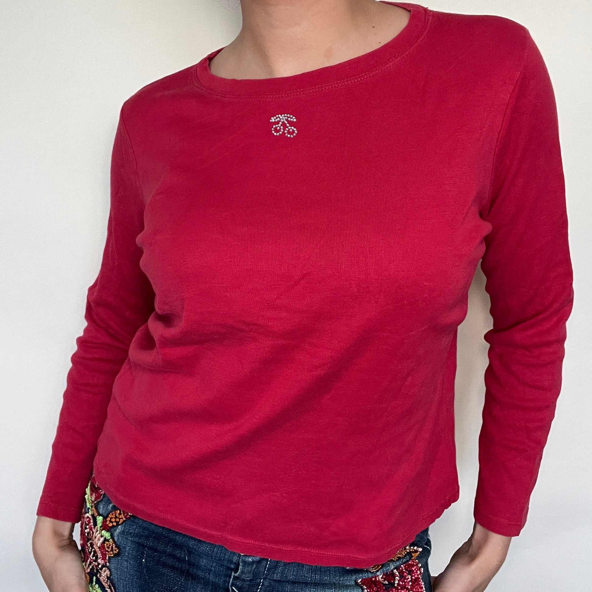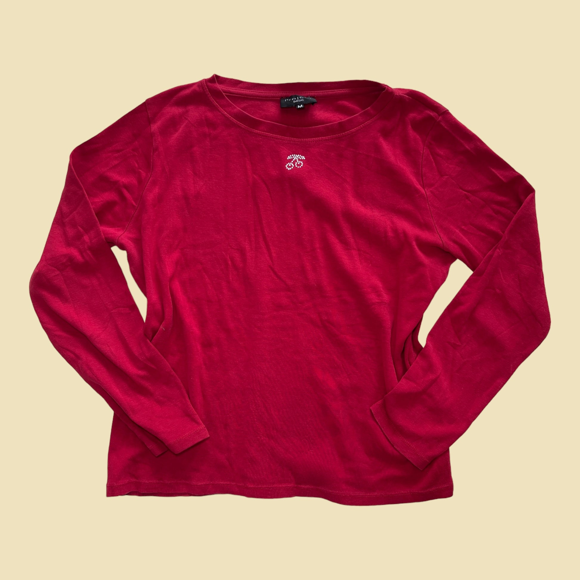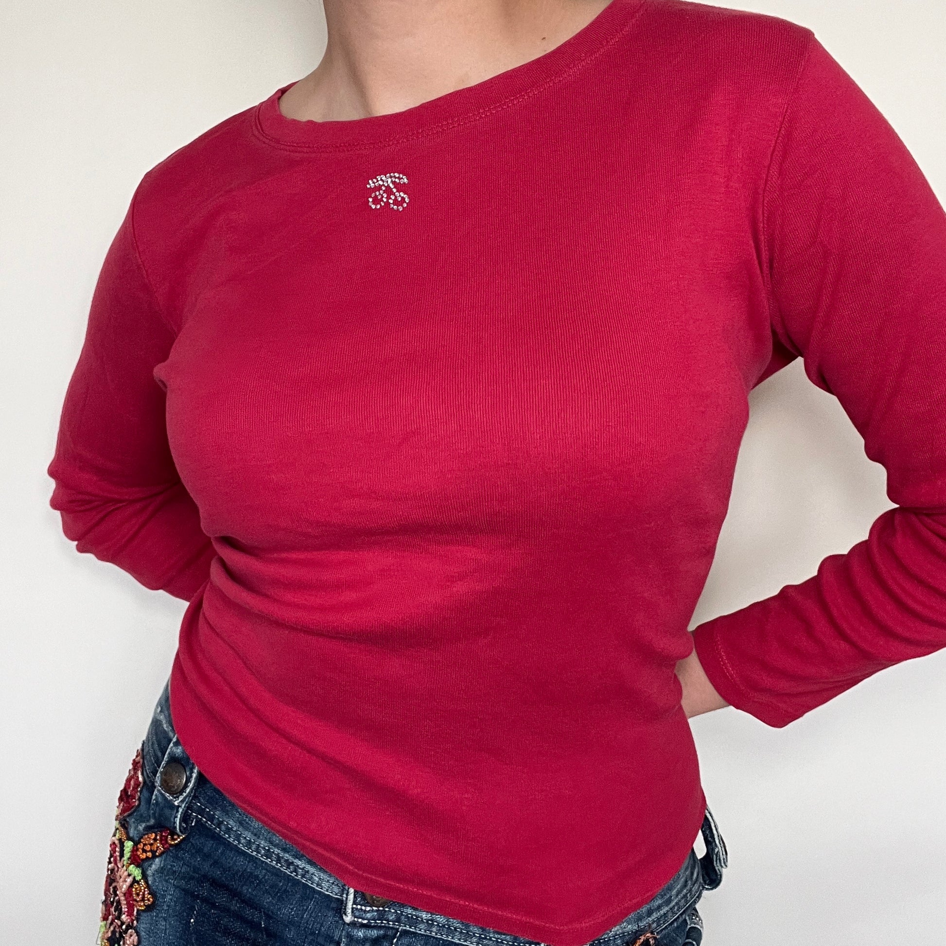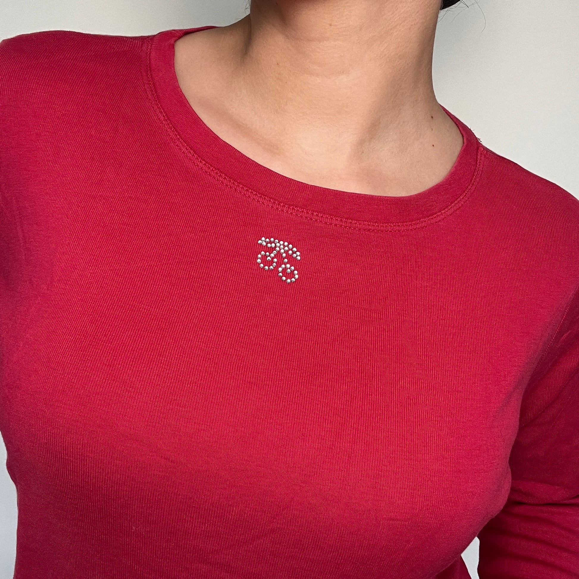 Top basic manche longue rouge cerise strass