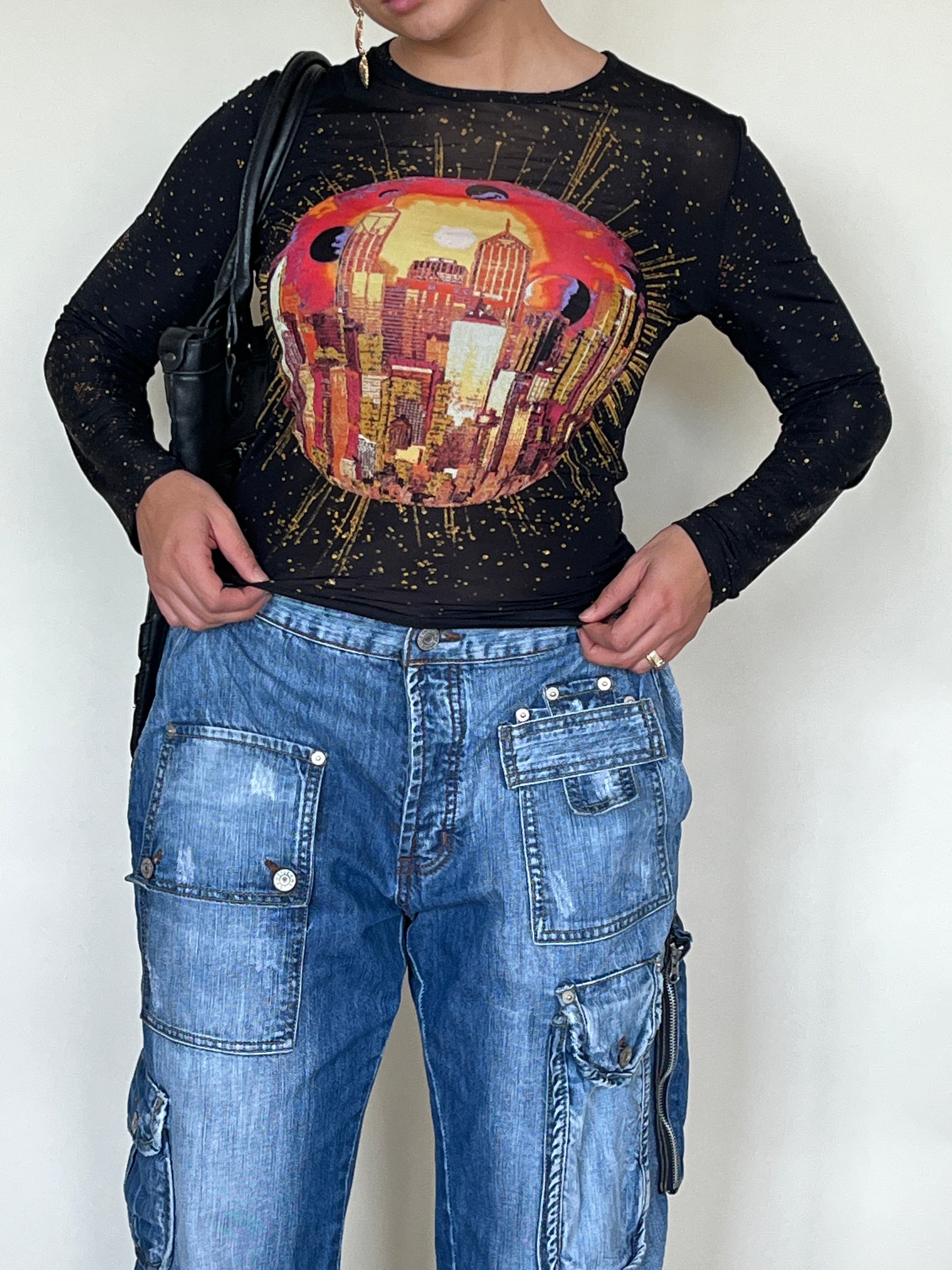 Top en mesh Kenzo 00s imprimé ville.
