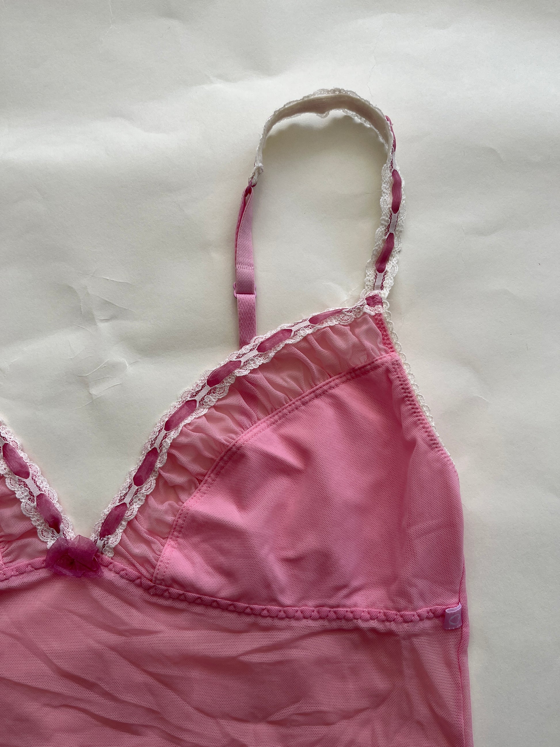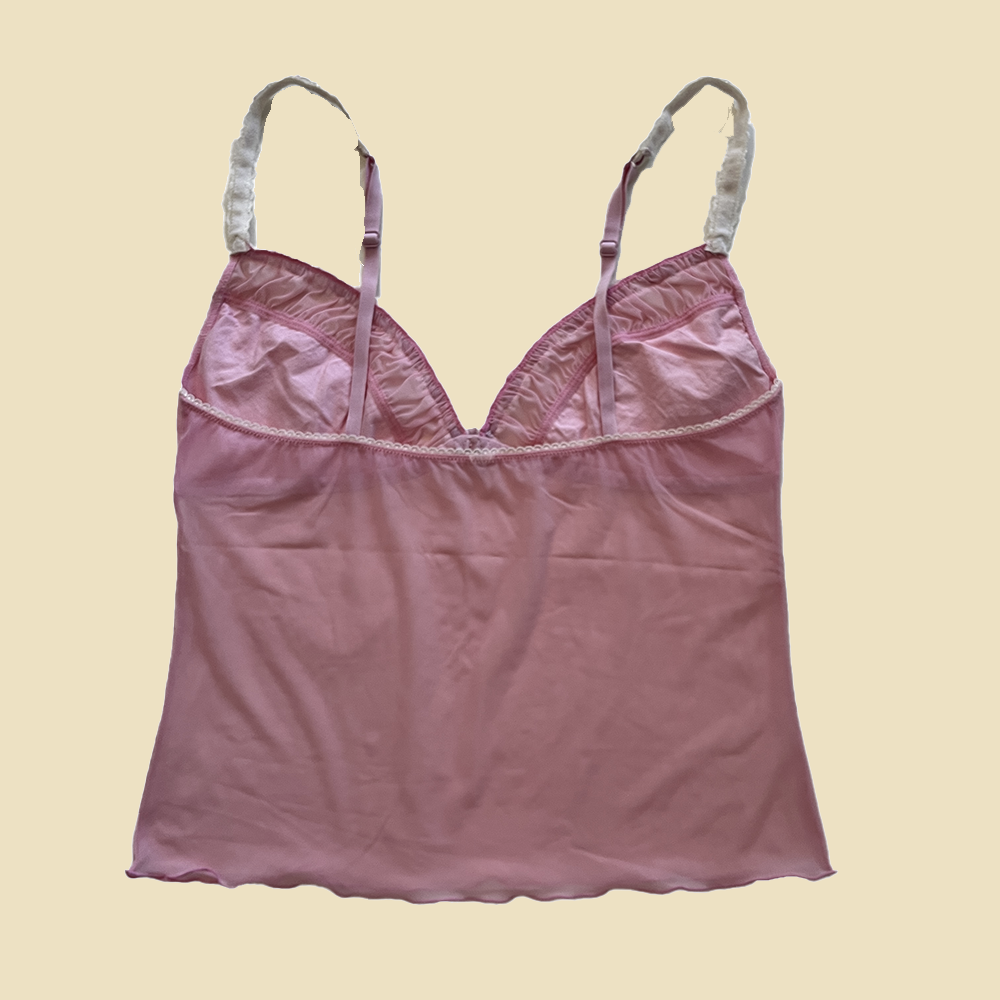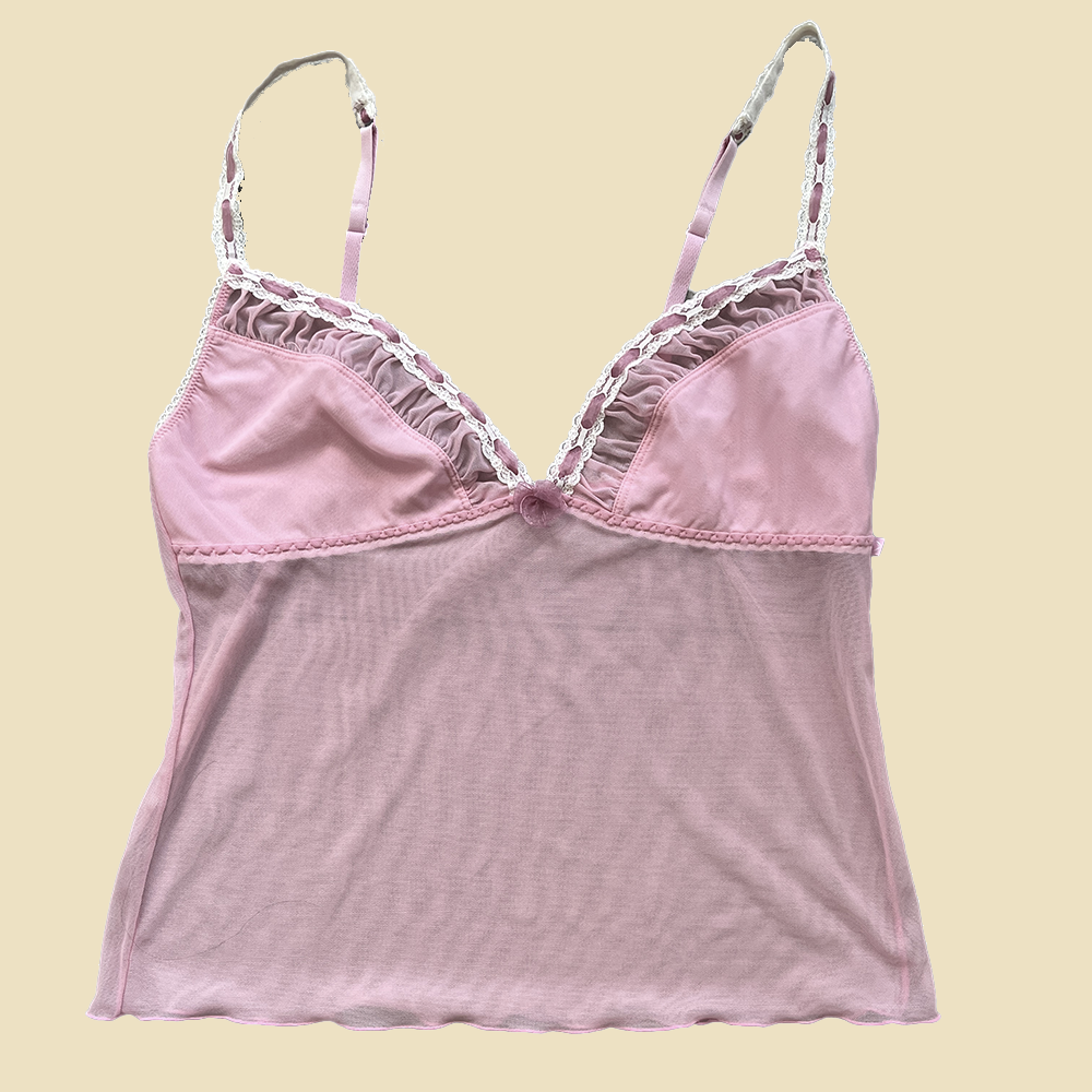 Top de lingerie rose et blanc. Bretelles réglables.