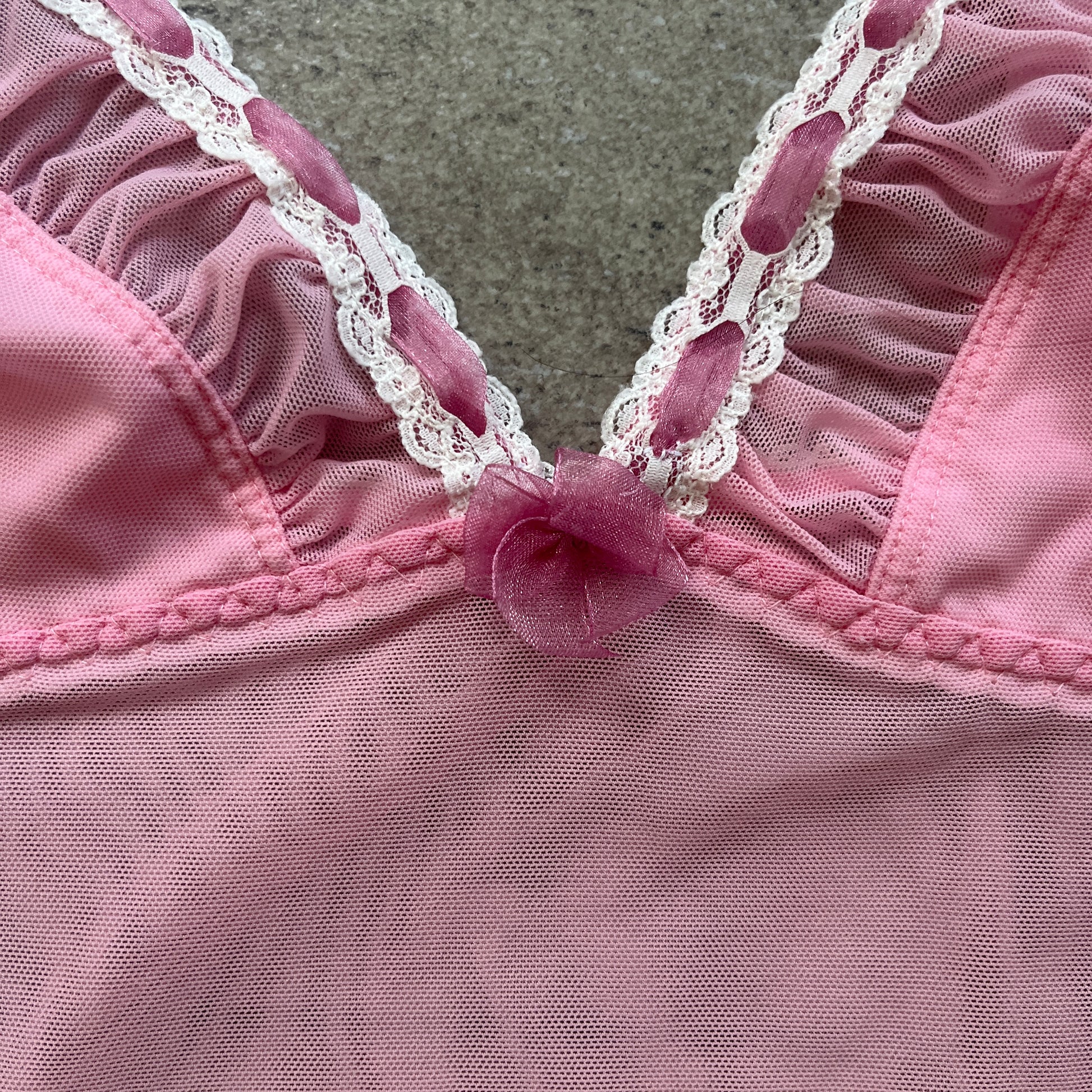 Top en mesh rose à dentelle