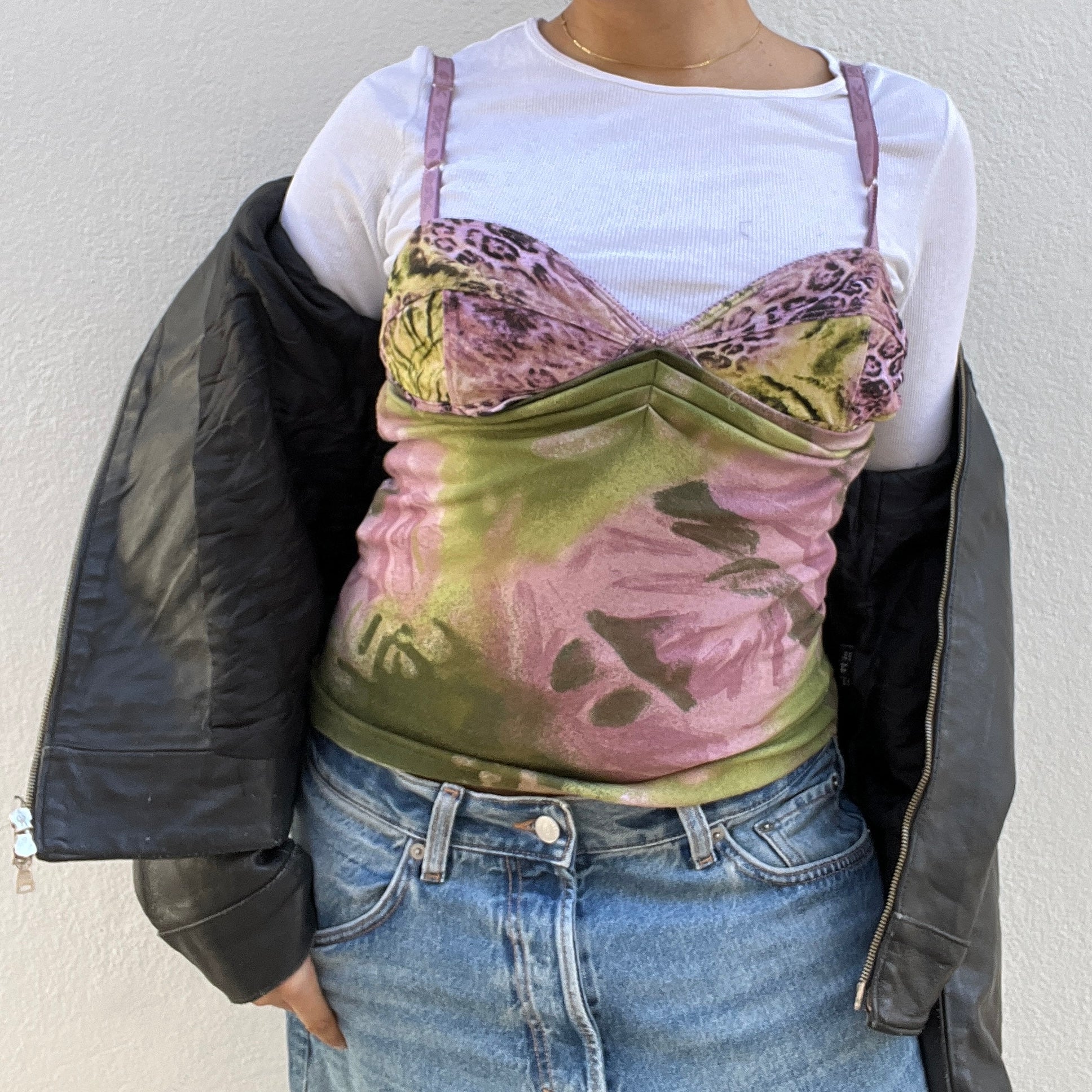 Top léopard/fleuri rose et vert Angelo Marani des années 2000.
