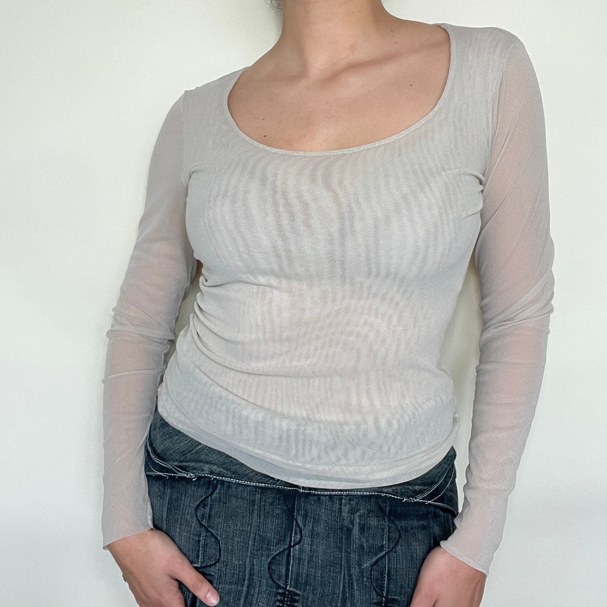 Top manche longue en mesh beige IPSE