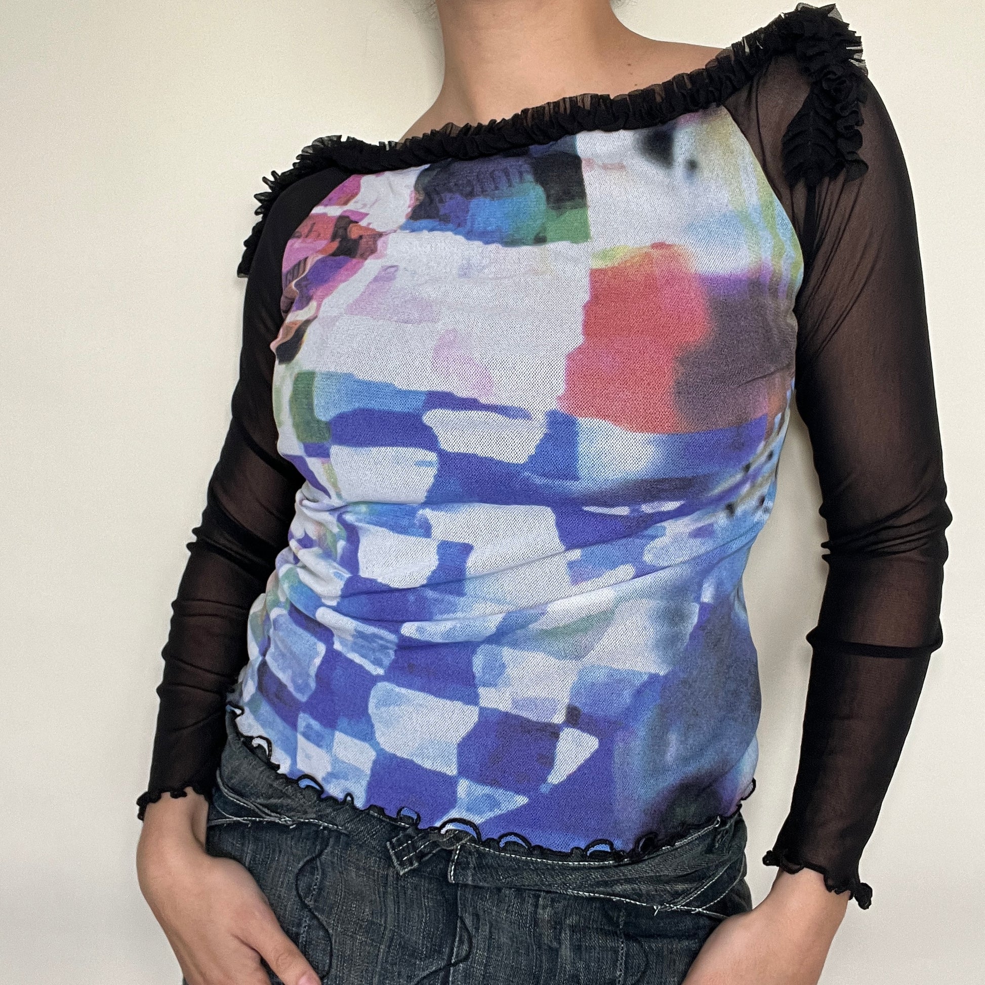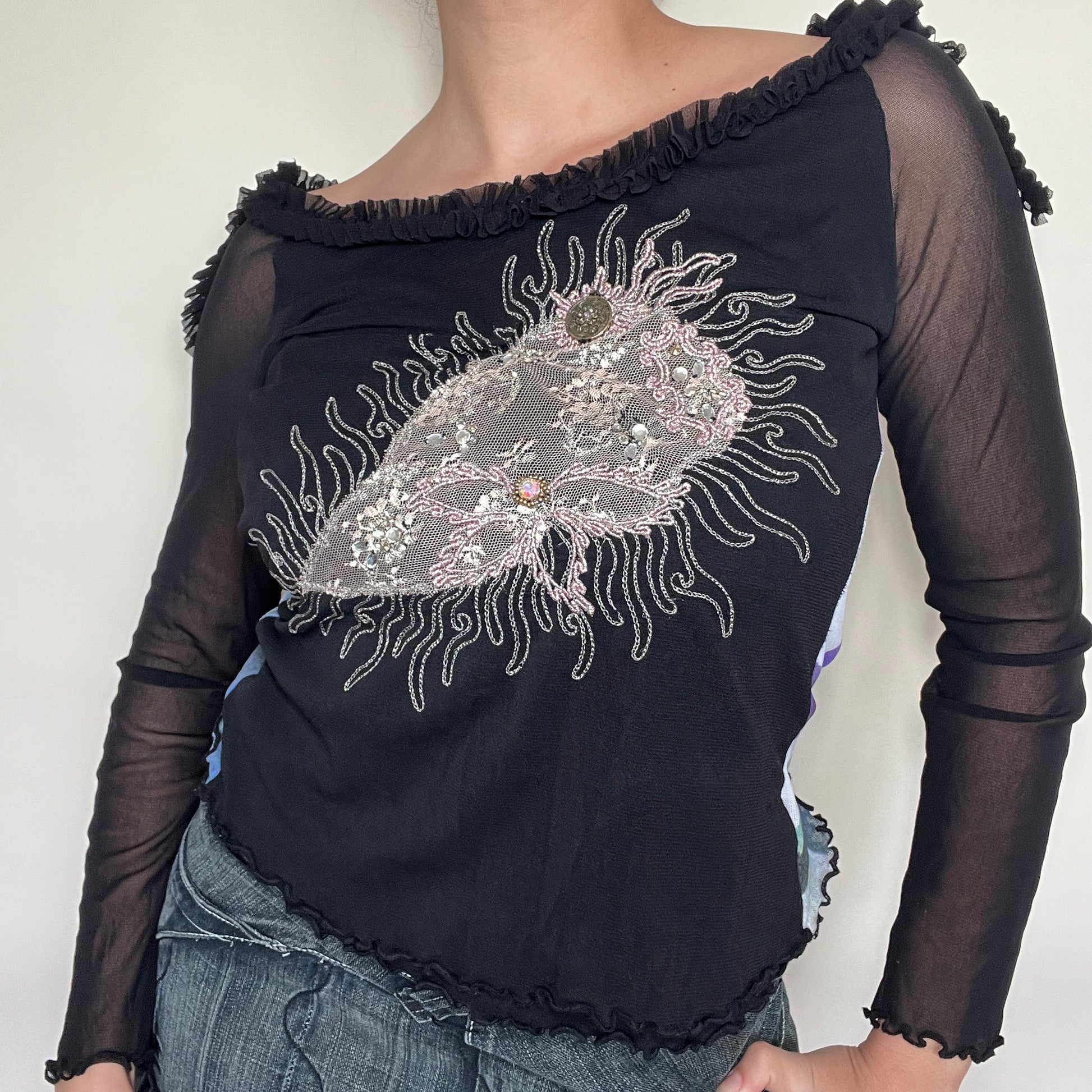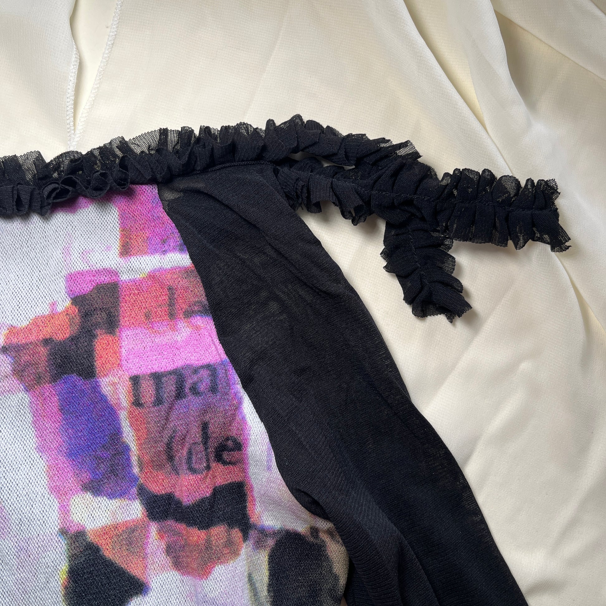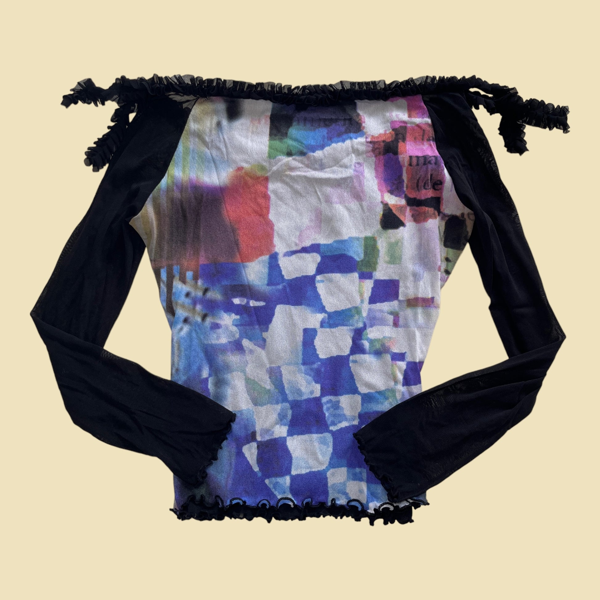 Top modulable en mesh côté graphique/côté féerique. Made in Italy