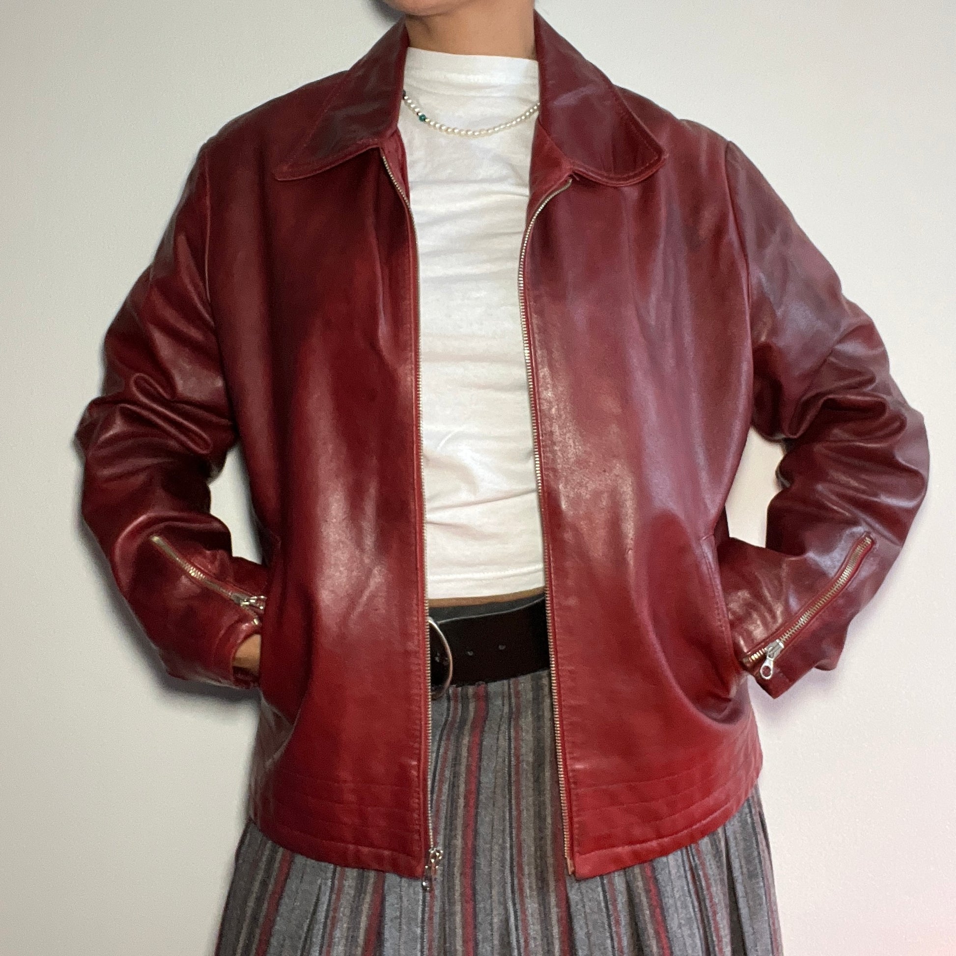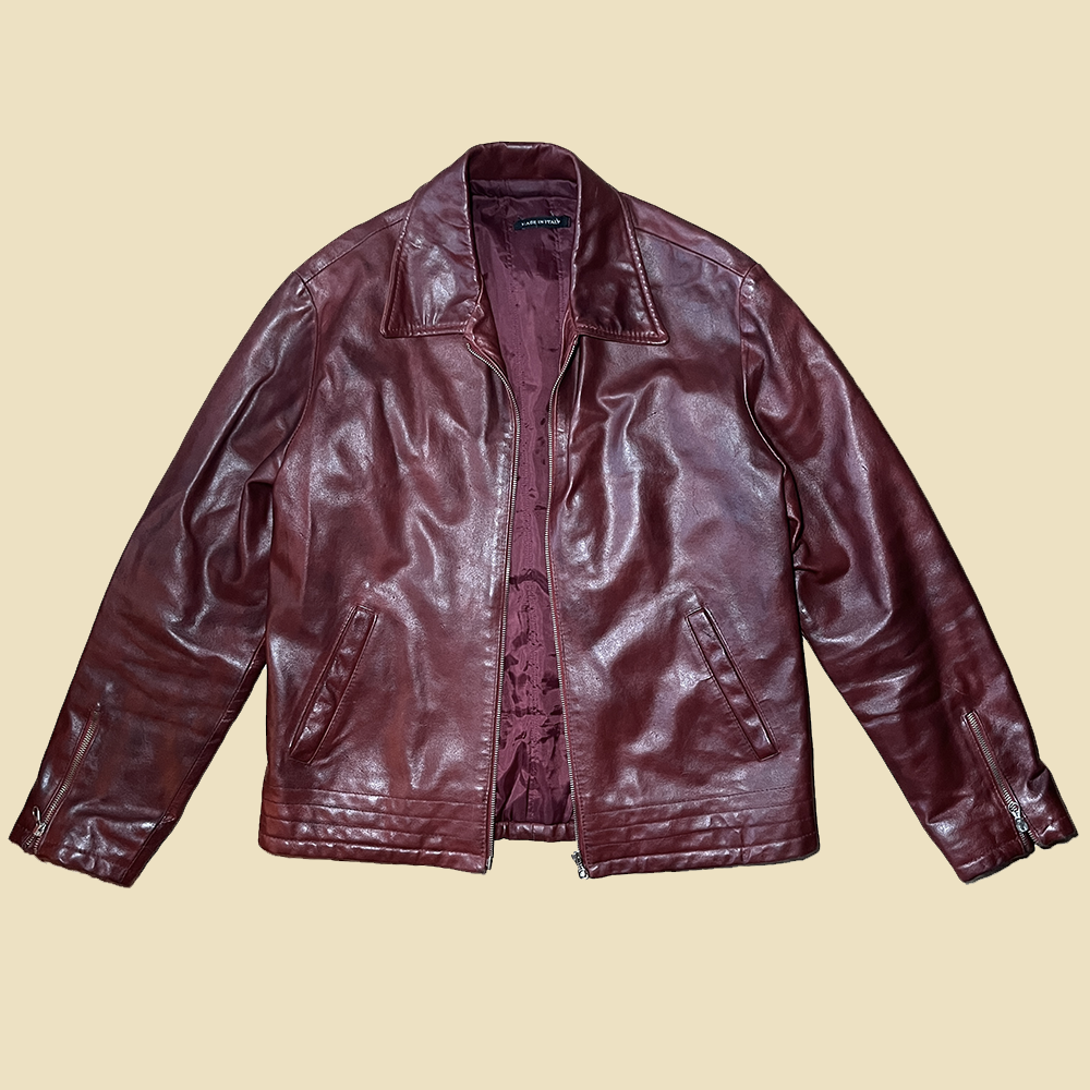 Veste rouge bordeaux en cuir pour homme. Made in Italie